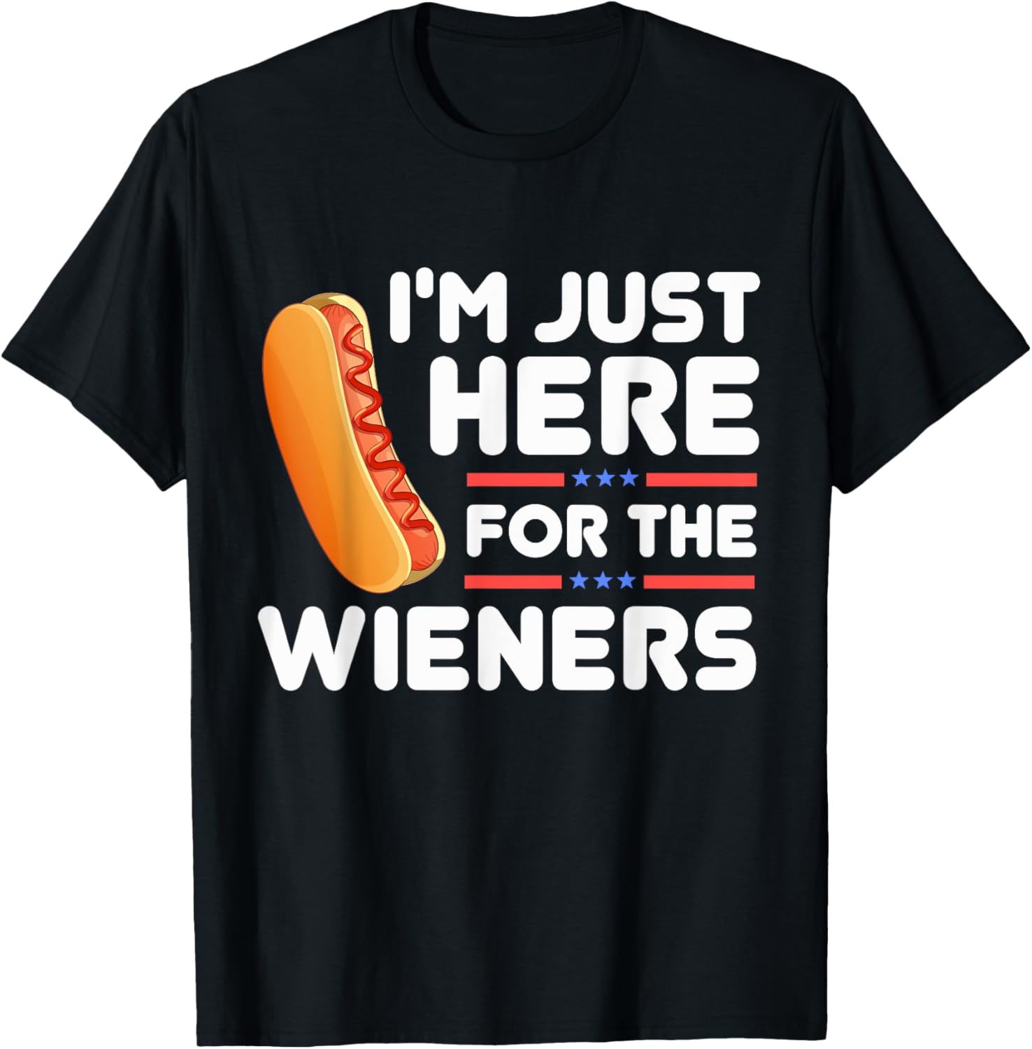 I'm Just Here for The Wieners 4th of July USA Flag American T-Shirt