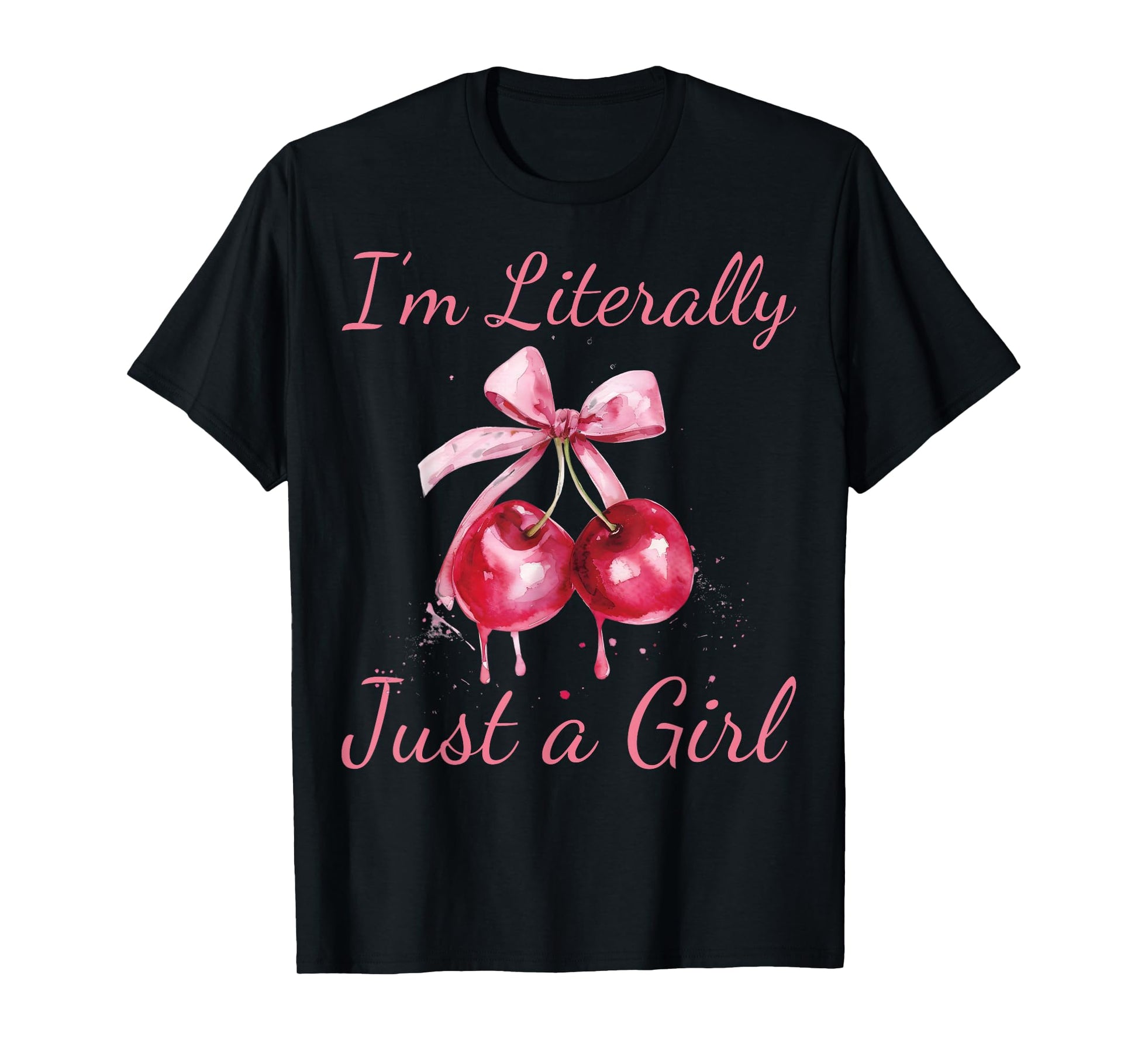 I'm Literally Just A Girl Pink Coquette Bow Cherry Women T-Shirt