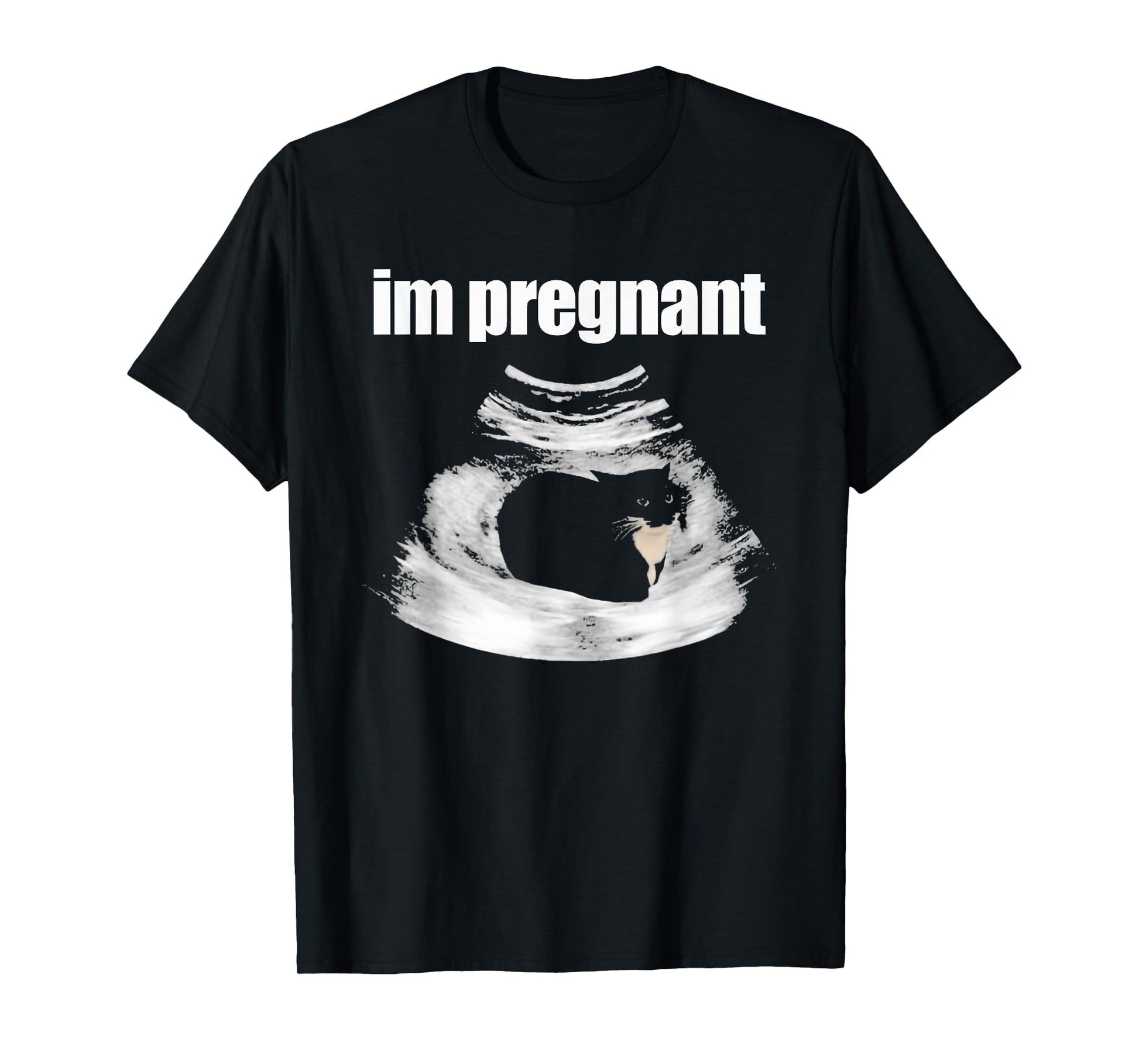 Iβm Pregnant Cat Funny Cat Mom Pregnancy Black Kitten T-Shirt for Men Women