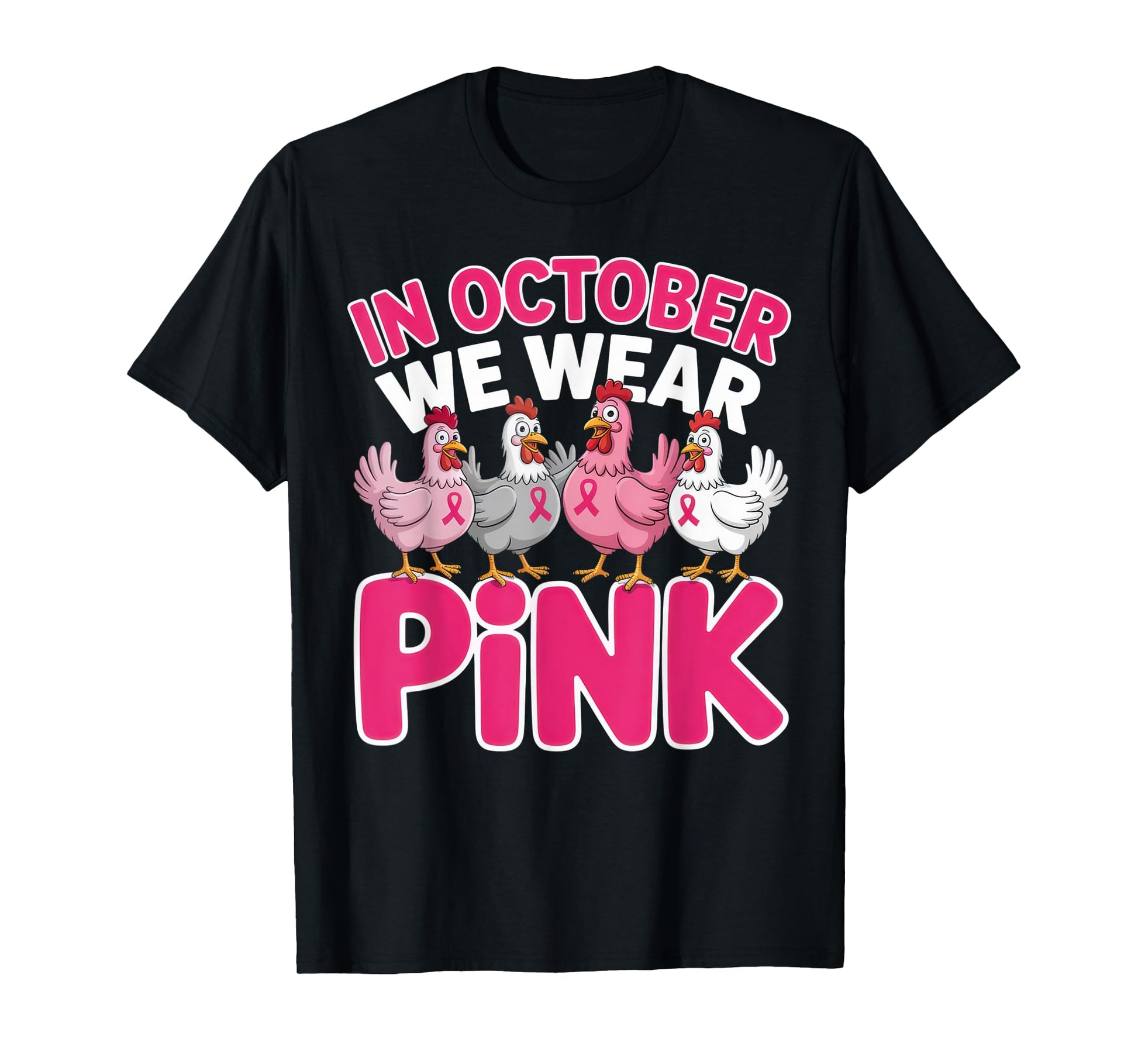 in October We Wear Pink Chicken Outfit for Breast Cancer awa T-Shirt