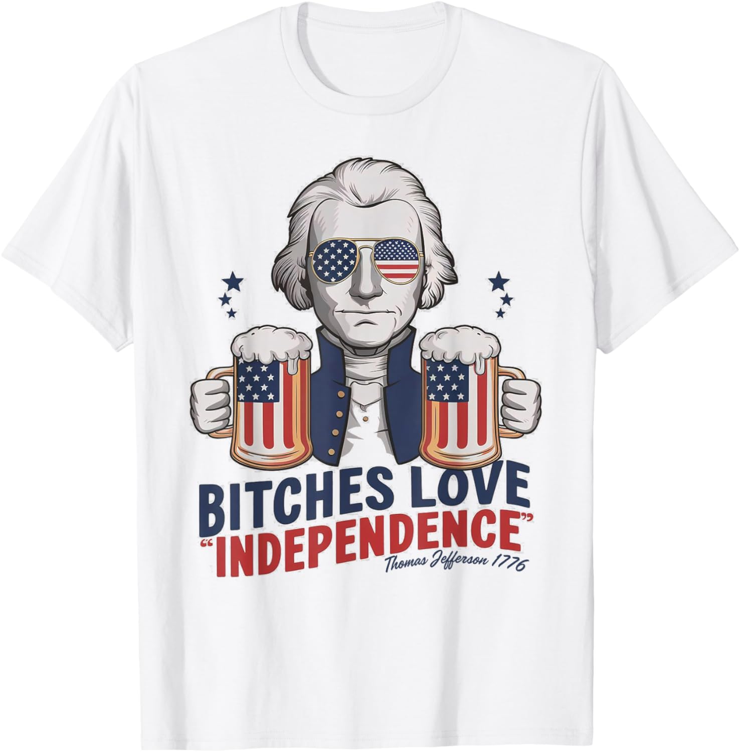Funny Bitches Love Independence Thomas Jefferson 4th of July T-Shirt