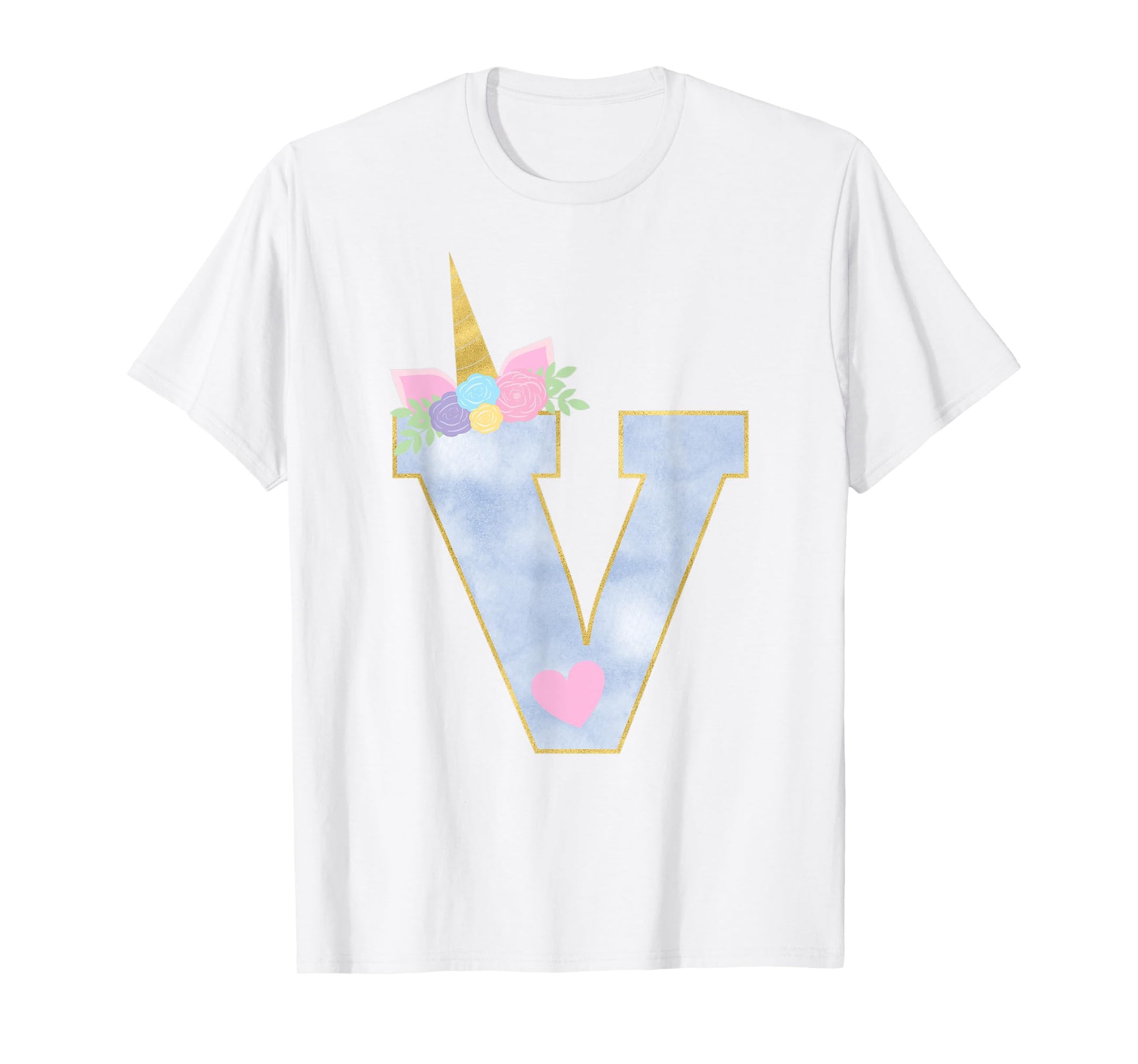 Initial Letter V Unicorn Monogram for Girls Unicorn Birthday T-Shirt