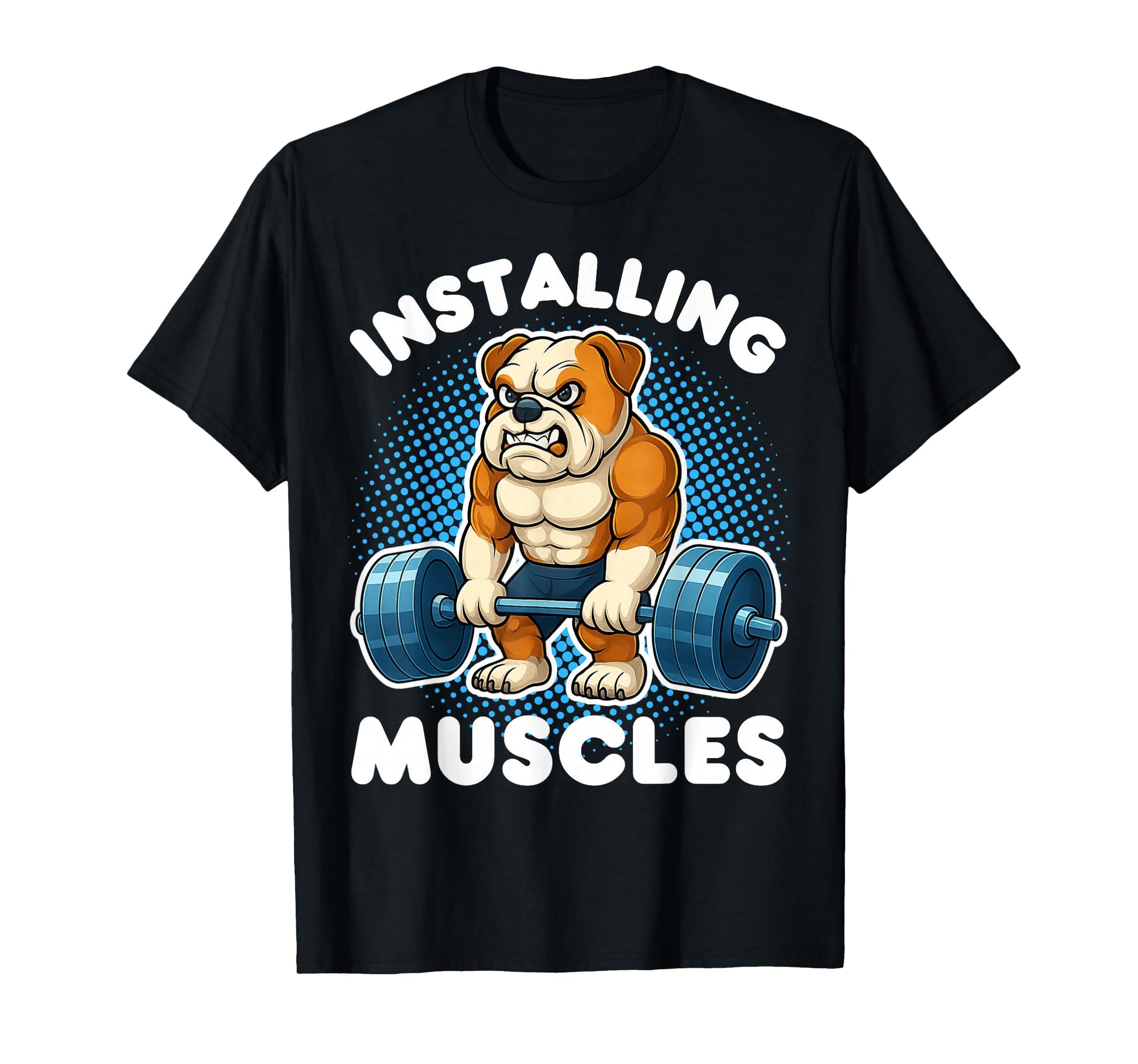 Installing Muscles Bulldog Weightlifting Fitness Gym T-Shirt