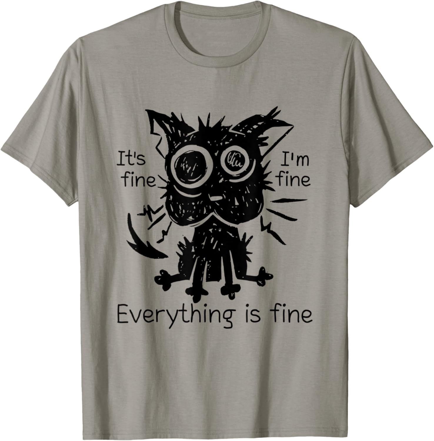 Funny Cat 'It's Fine I'm Fine' Stress Relief for cat lovers T-Shirt