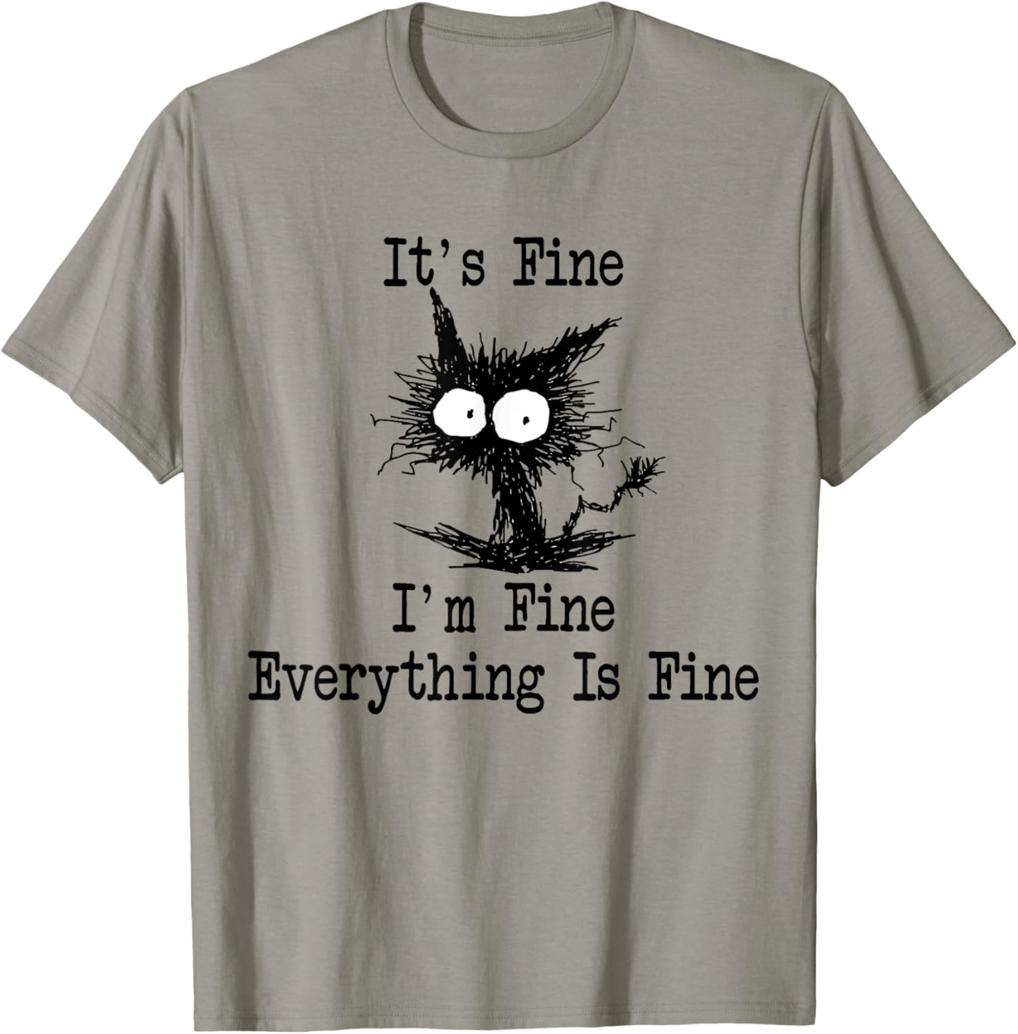It's Fine I'm Fine Everything Is Fine Funny Black Cat T-Shirt
