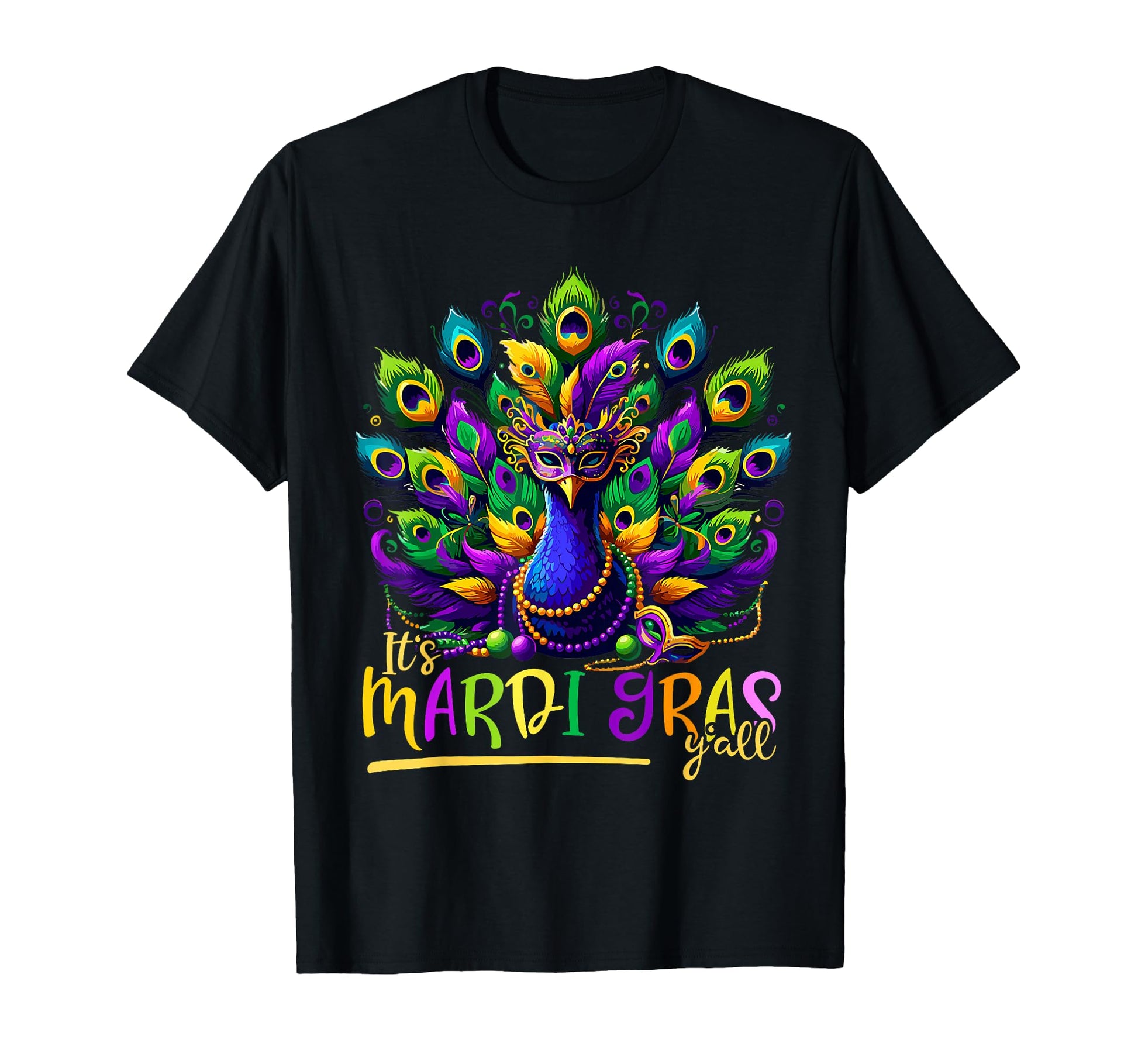 Its Mardi Gras Y'All Peacock Costume Kids Women Mardi Gras T-Shirt