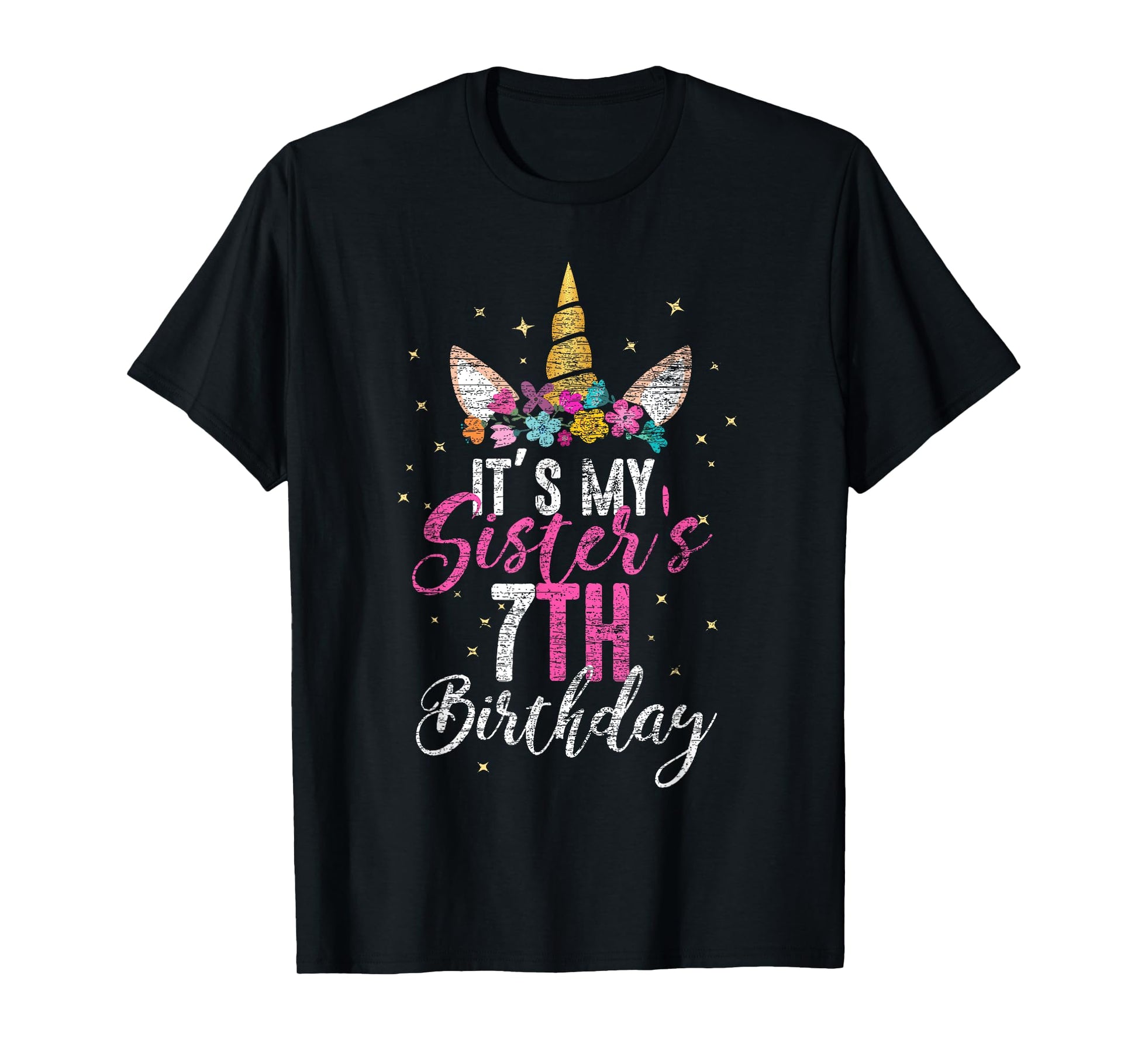 Its My Sisters 7th Birthay Gift Girl Unicorn Birthday T-Shirt