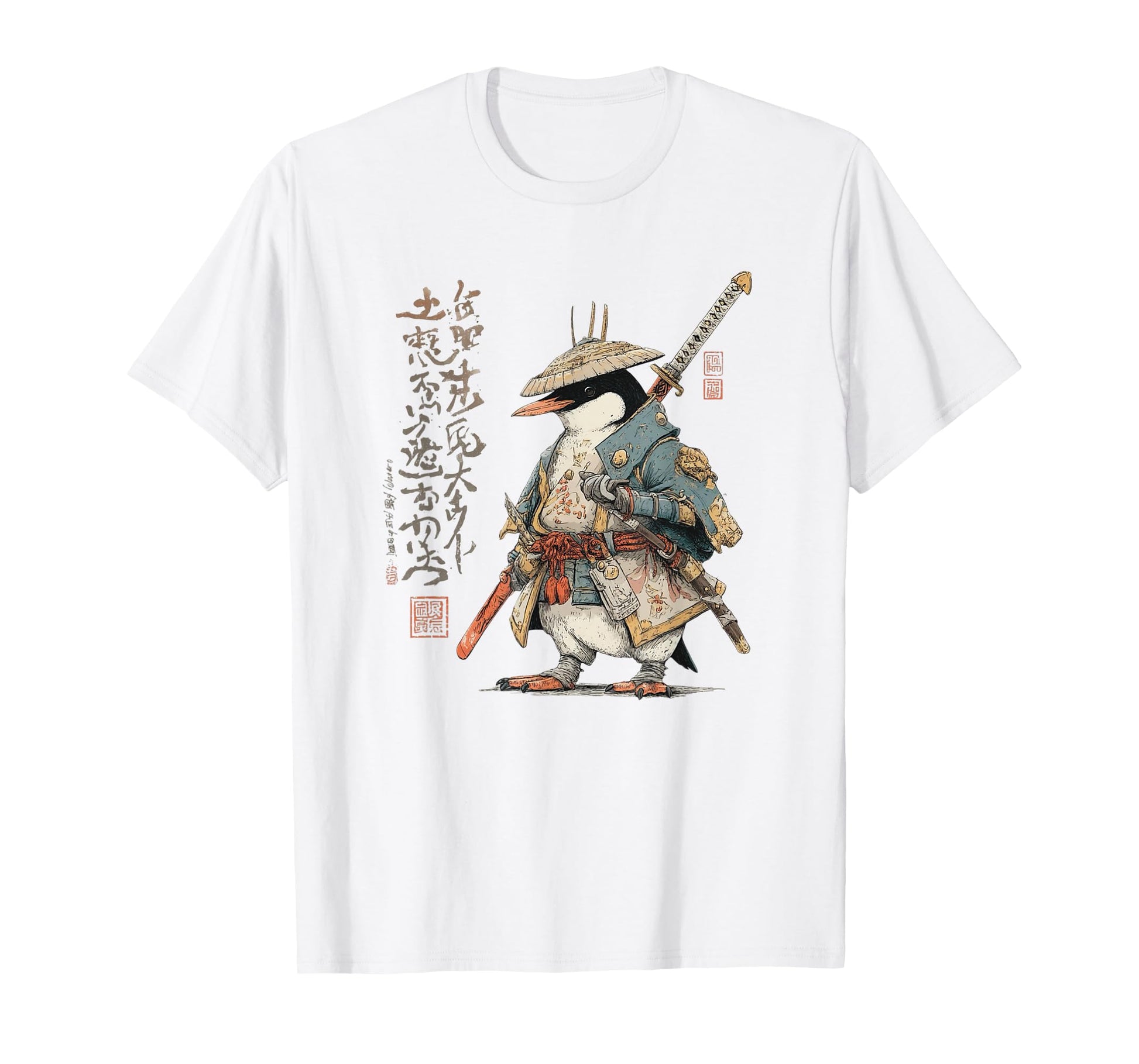 Japanese Woodblock Art Penguin Samurai Animal T-Shirt
