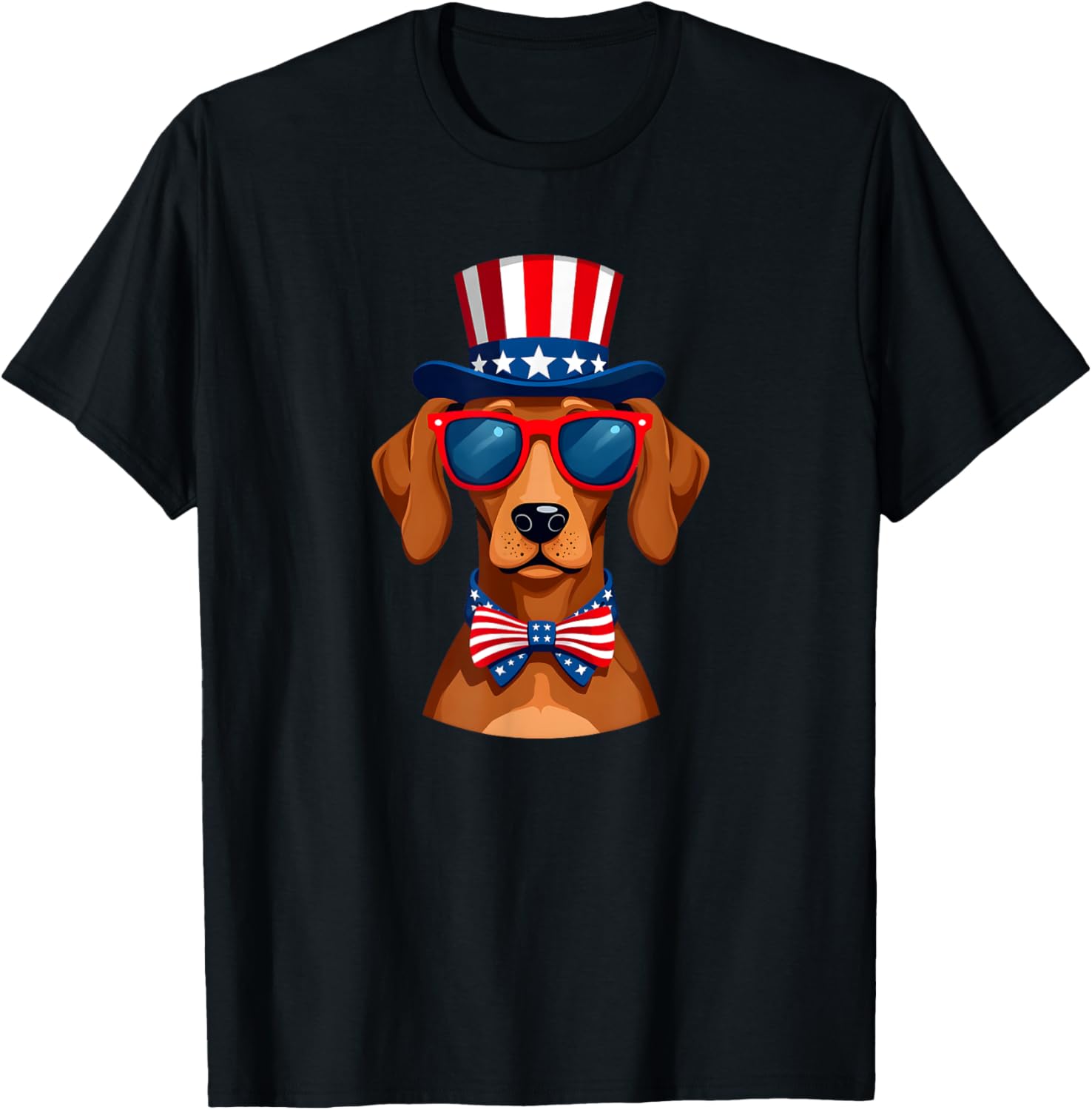 Vizsla Dog, July 4th, Patriotic, American Flag T-Shirt
