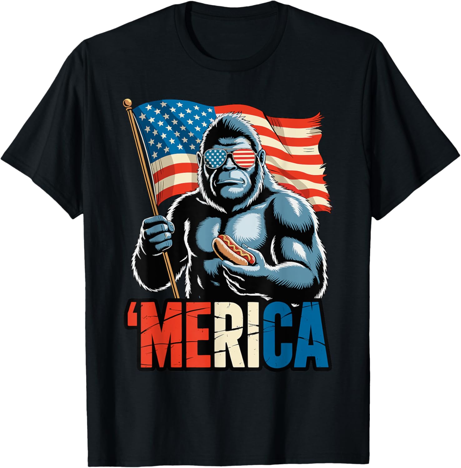 Retro 4th Of July America Bigfoot Hotdog USA American Flag T-Shirt