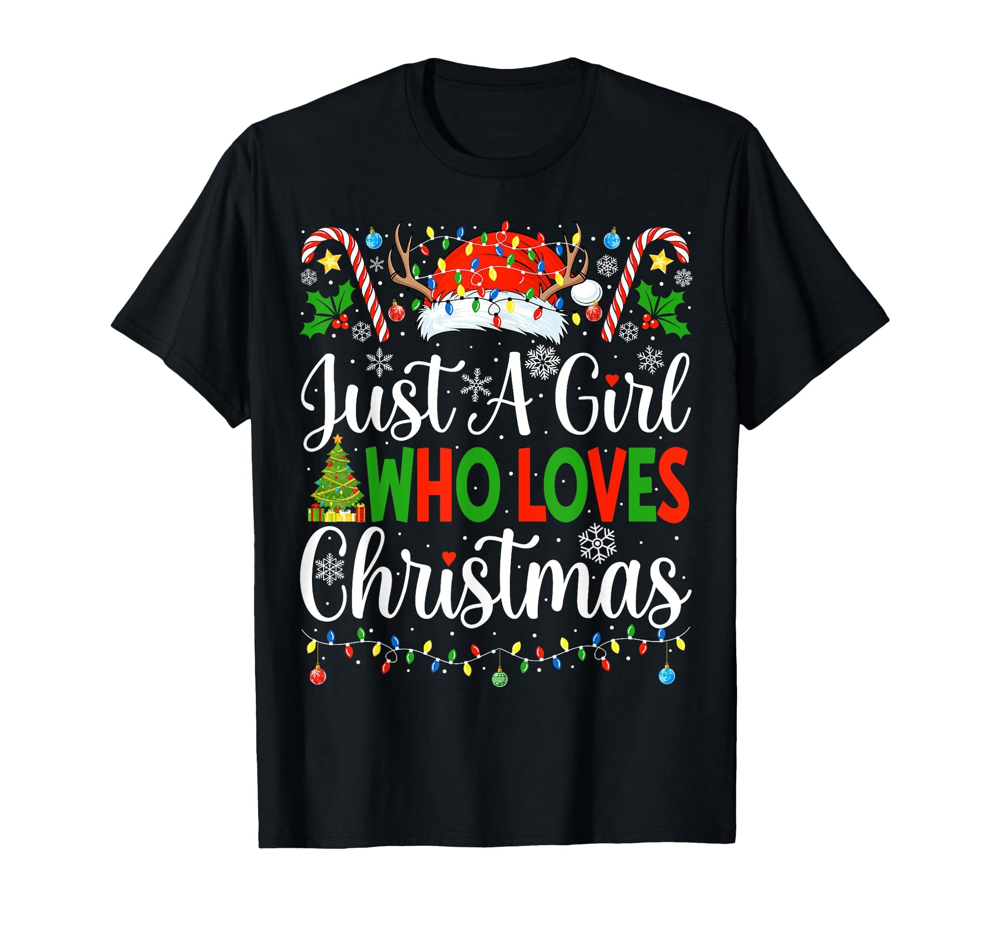 Just A Girl Who Loves Christmas Women Xmas Tree Girls Santa T-Shirt