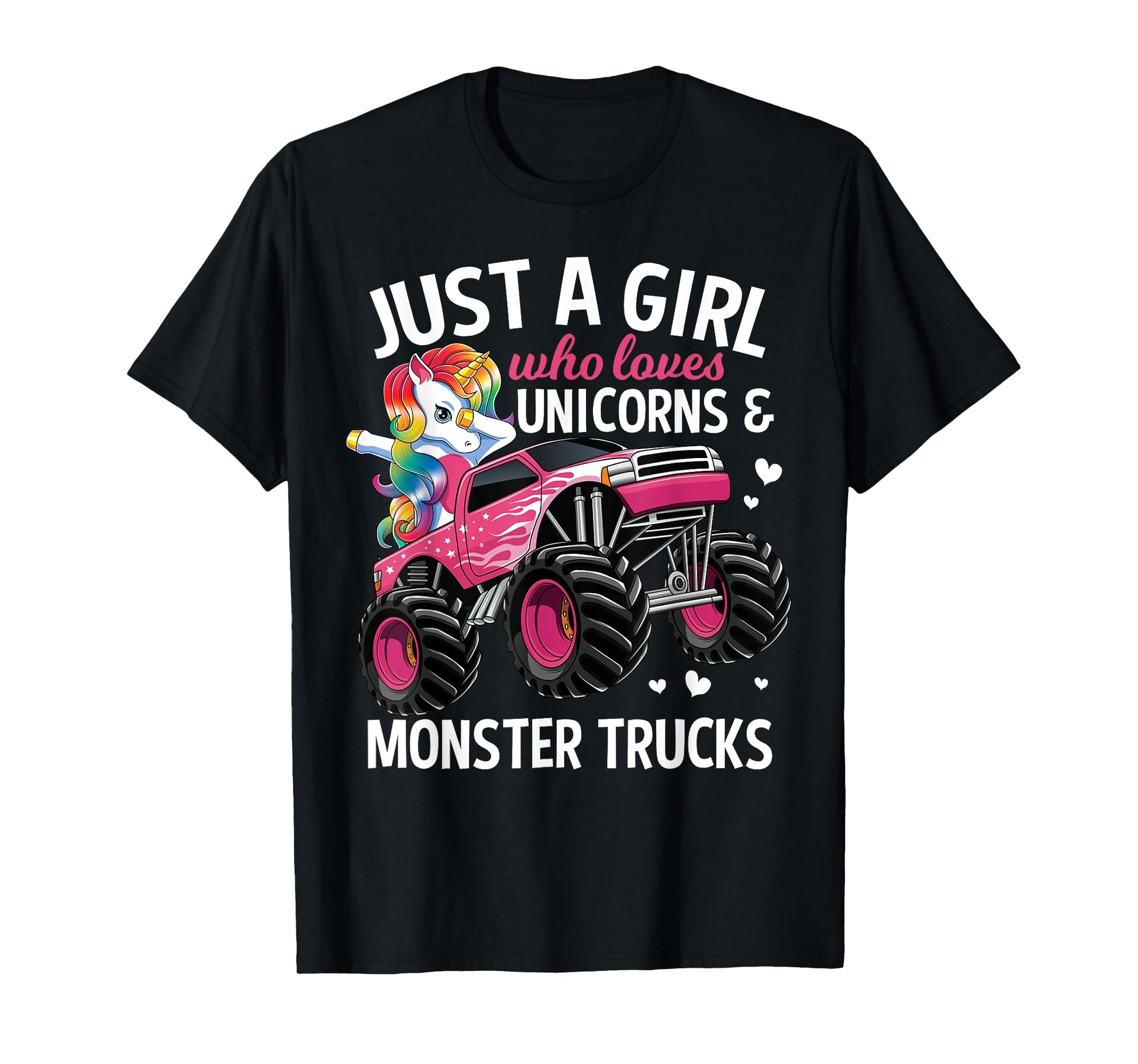 Just A Girl Who Loves Unicorns And Monster Trucks Girls Kids T-Shirt