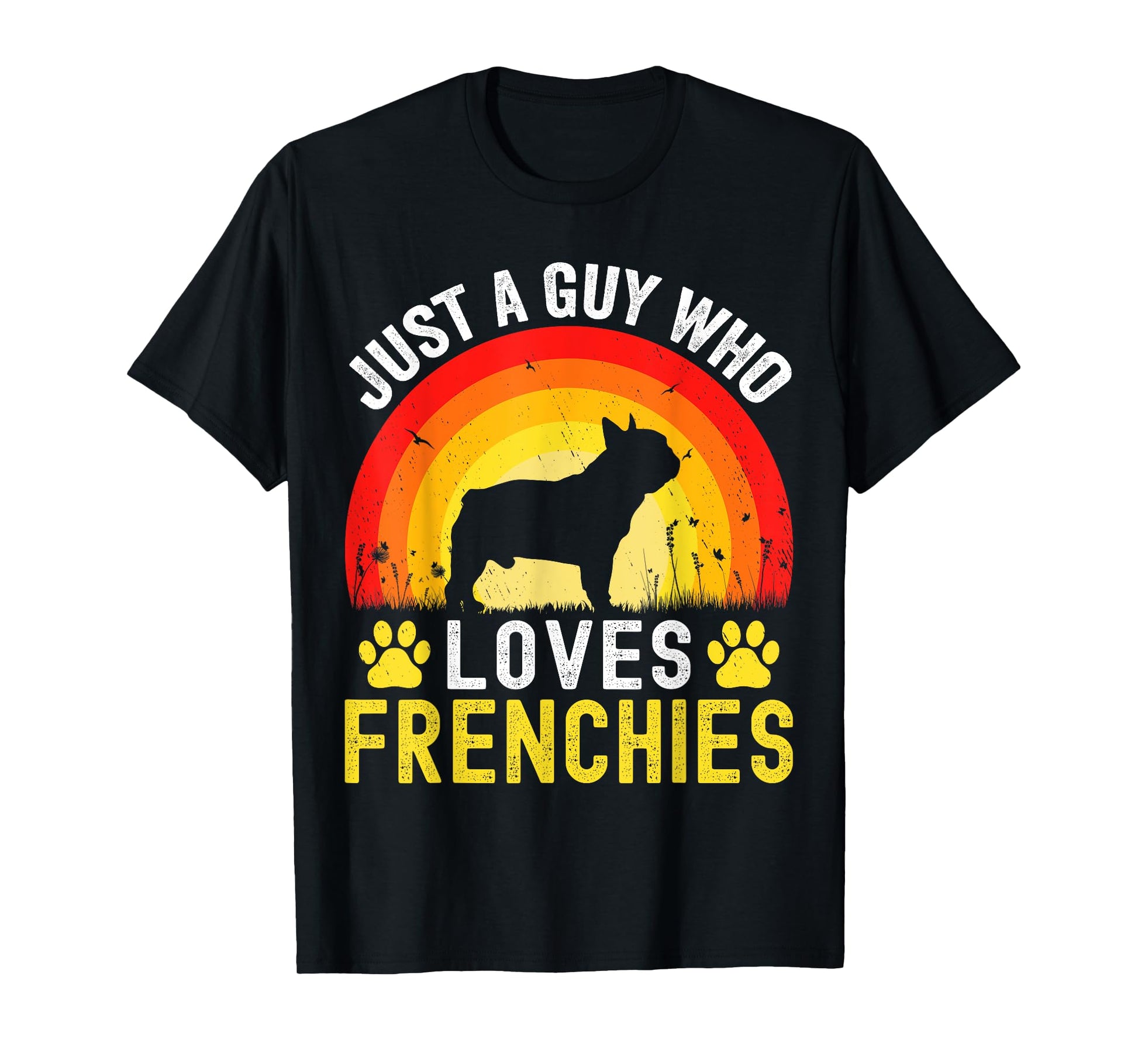 Just A Guy Who Loves Frenchies Retro Vintage Frenchie Dog T-Shirt