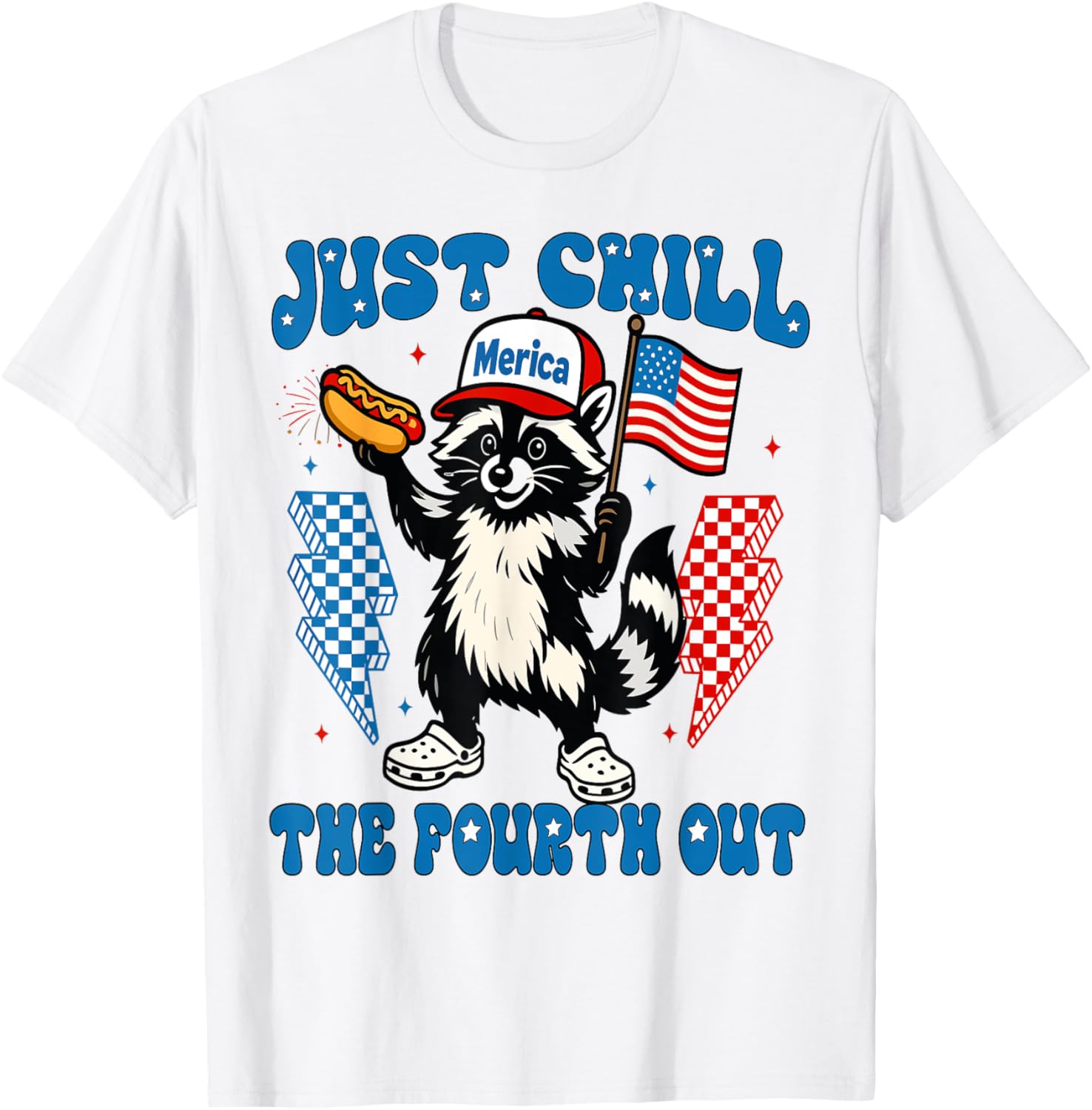 Retro Just Chill The Fourth Out Raccoon Hotdog 4th Of July T-Shirt