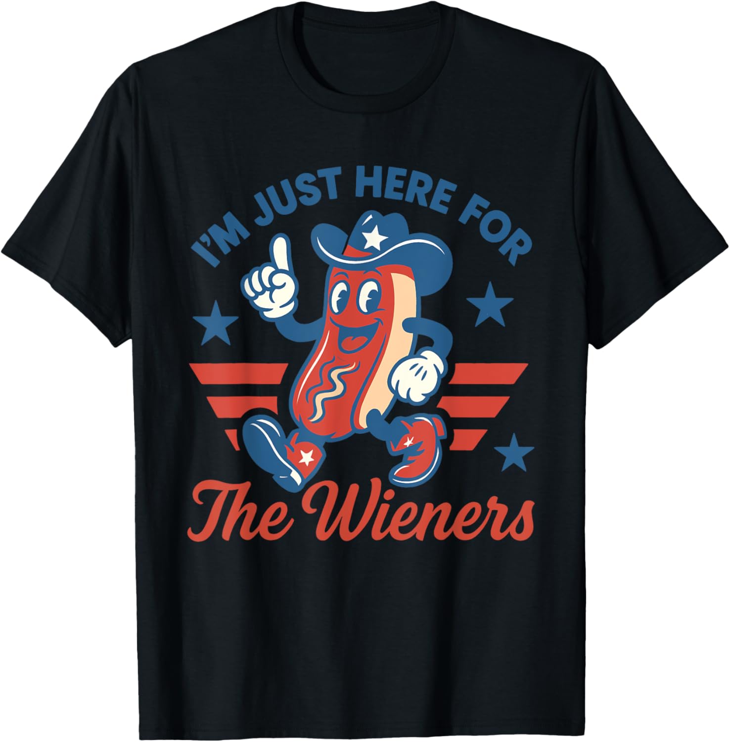 Hot Dog I'm Just Here For The Wieners Funny Fourth of July T-Shirt