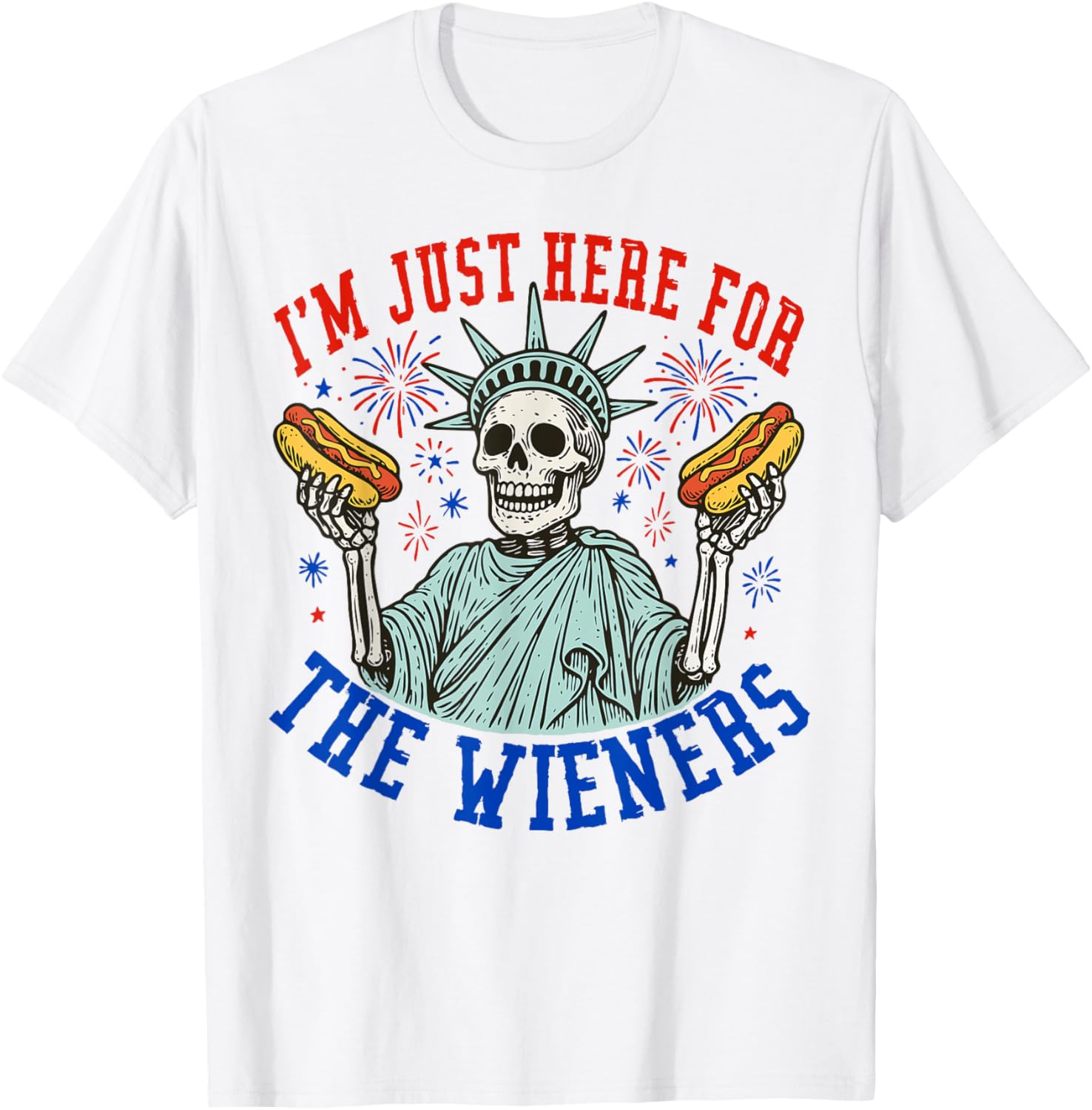Just Here For The Wieners Skeleton Hot Dog 4th Of July USA T-Shirt