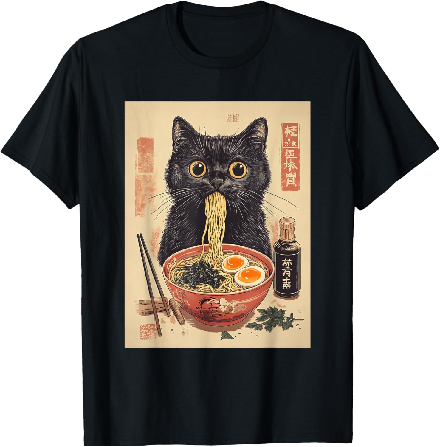 Kawaii Noodles Soup Anime Japanese Ramen Cat Teens Girls T-Shirt