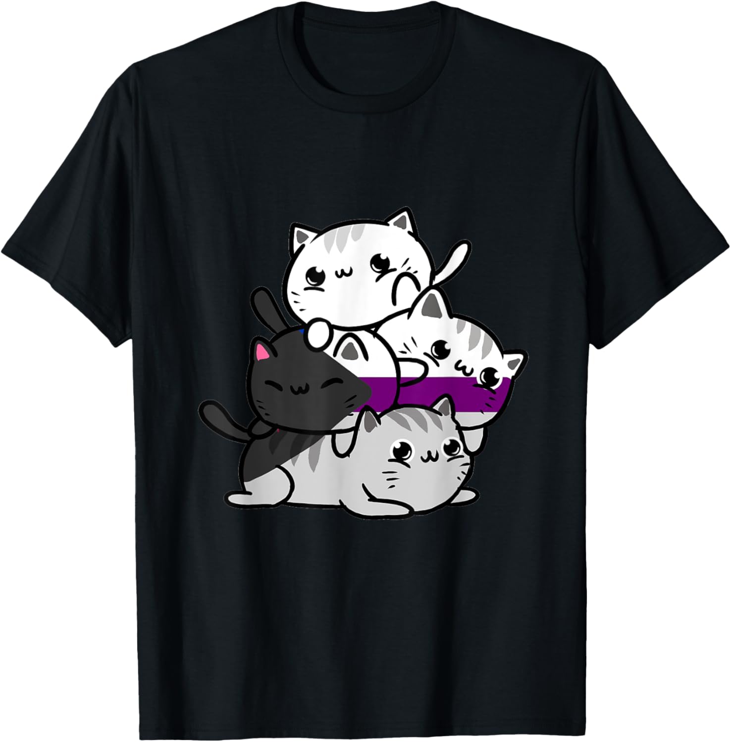 Kawaii Cat Pile Demisexual Pride Flag T-Shirt