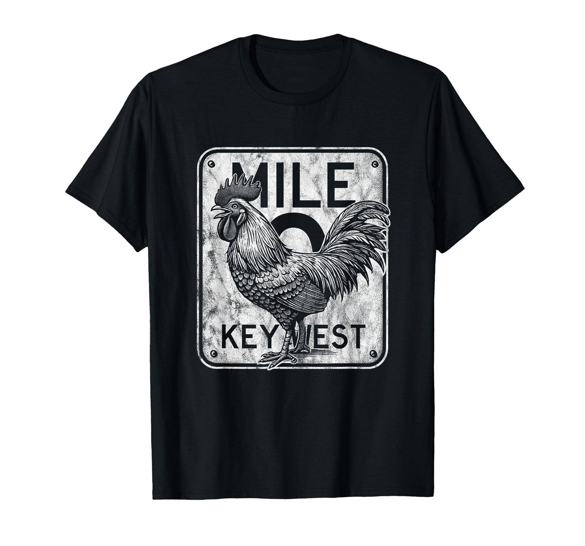 Key West Florida Chicken Retro Mile 0 Rooster Distressed T-Shirt
