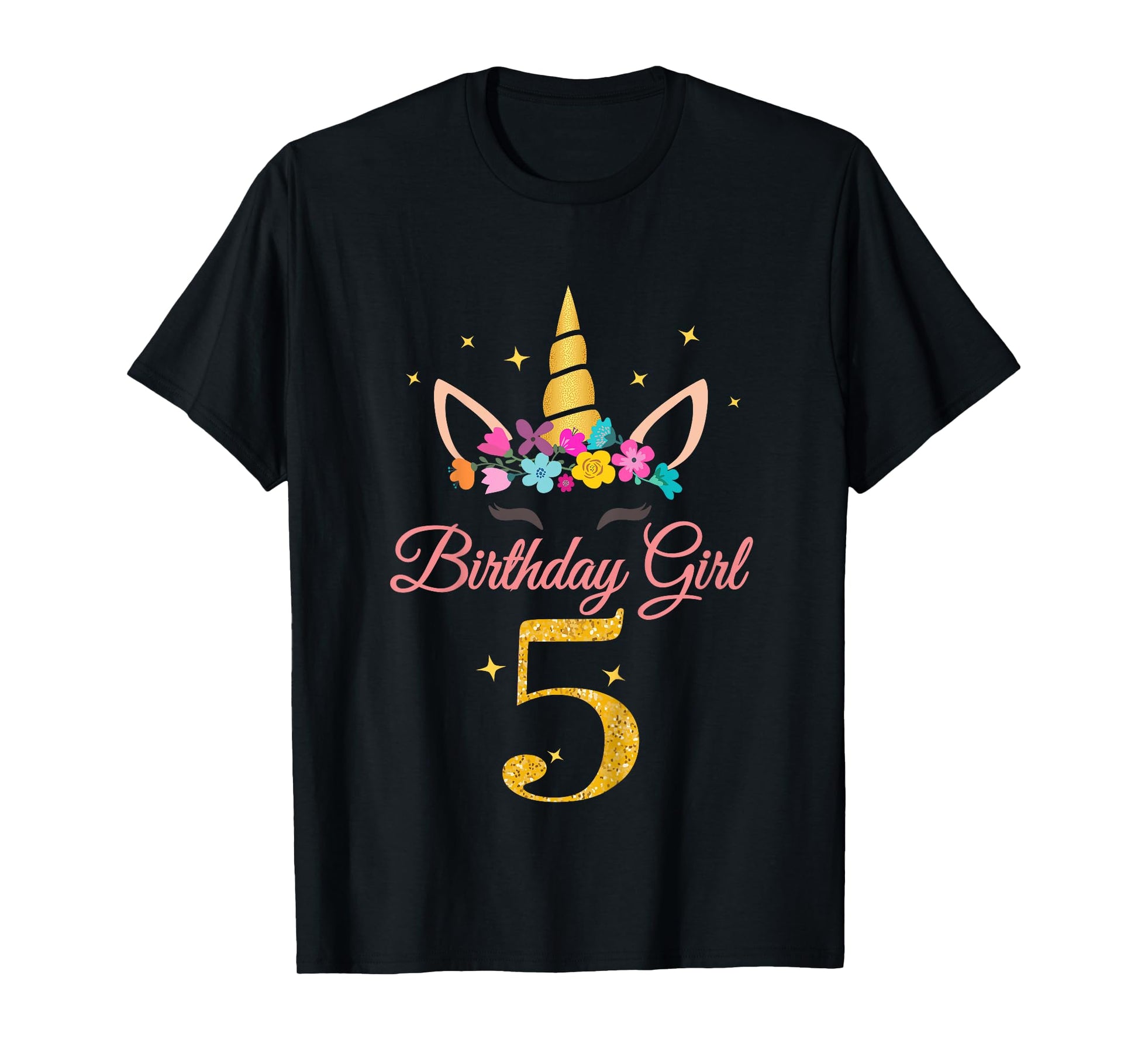 Kids 5 Birthday Girl Unicorn Design 5-Year-Old 5th BDay T-Shirt