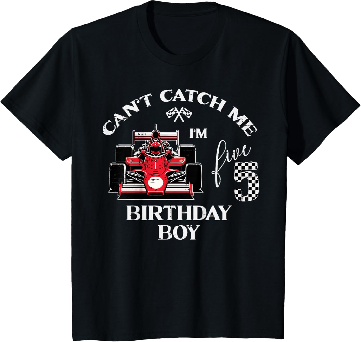 Kids 5th Birthday Race Car Bday Boy Cant Catch Me Im 5 Years Boys T-Shirt