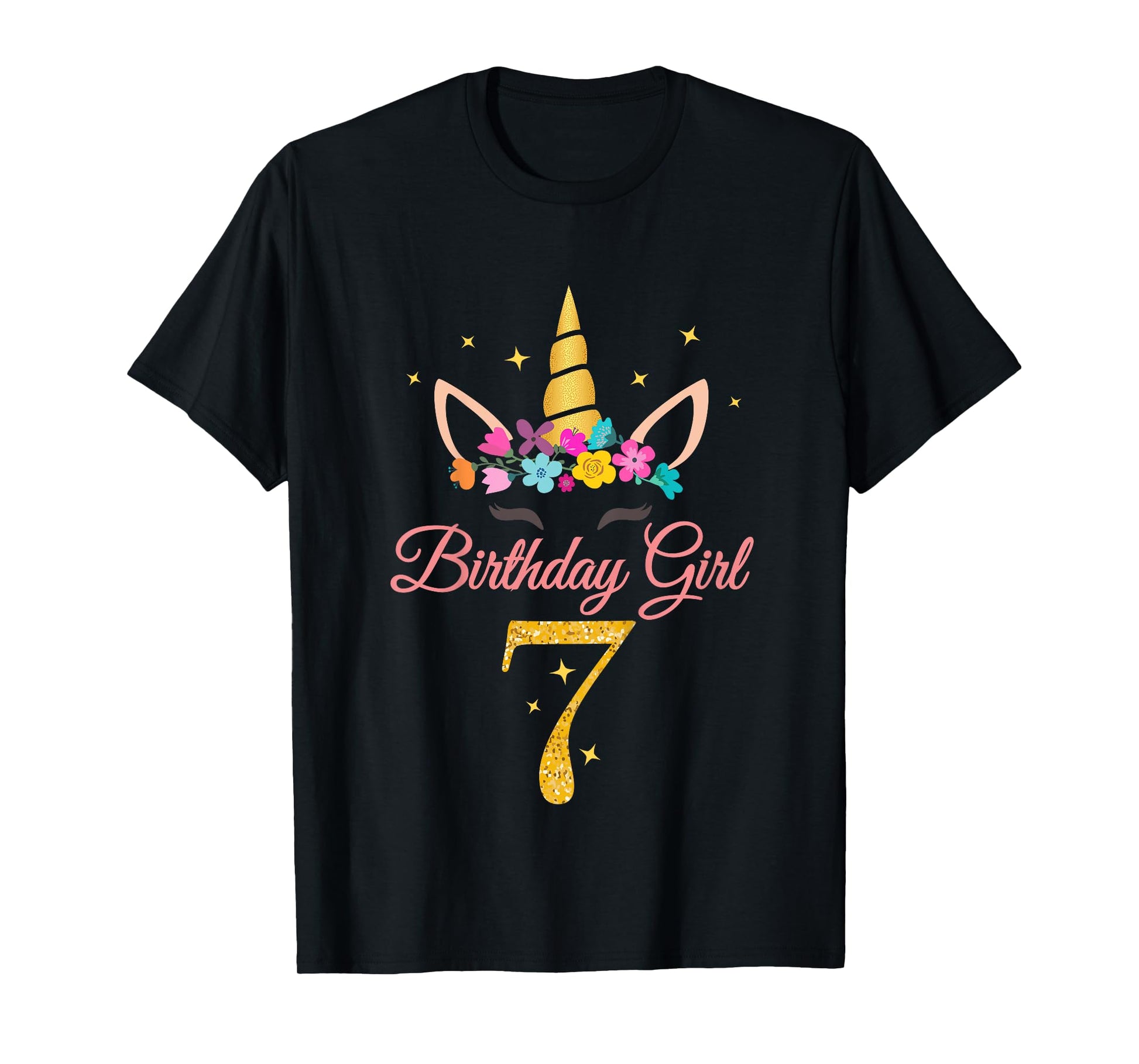 Kids 7 Birthday Girl Unicorn Design 7-Year-Old 7th BDay T-Shirt