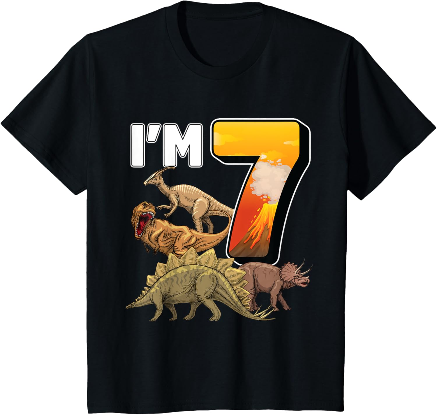 Kids 7 Year Old dinosaurs birthday 7th Party paleontologist Boys T-Shirt