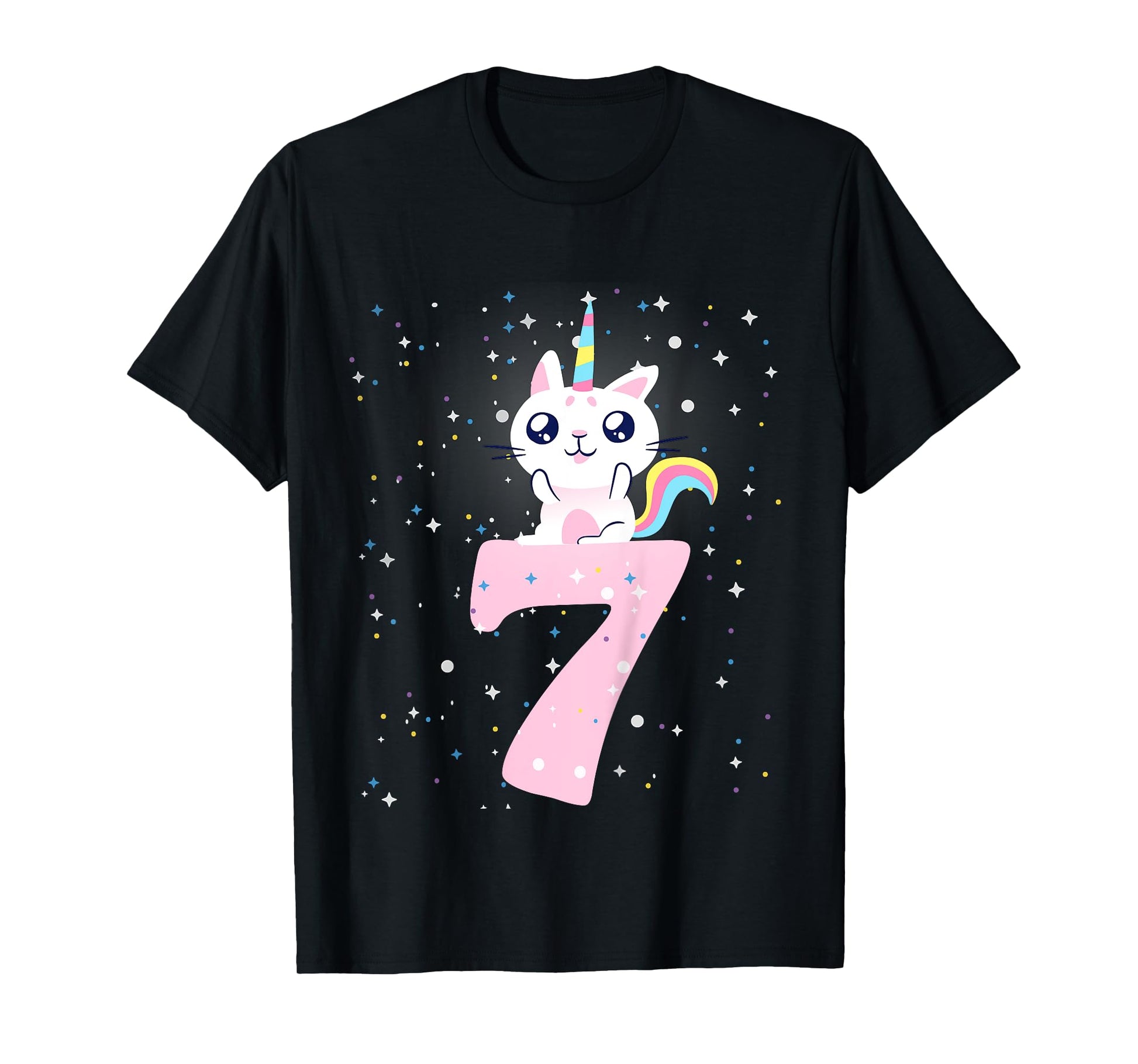Kids 7th birthday girl outfit unicorn cat T-Shirt