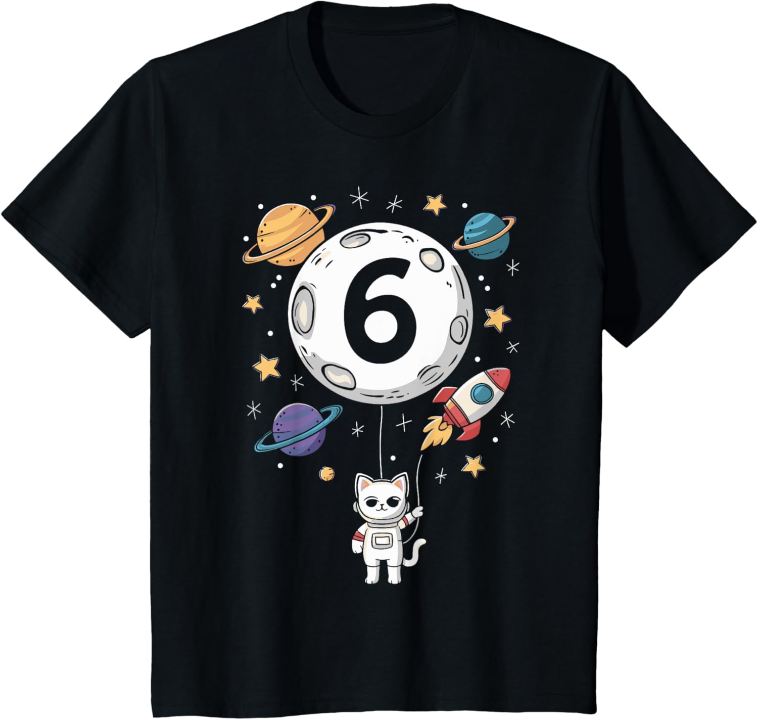 Kids 6 Year Old Birthday Cat Astronaut 6th Birthday T-Shirt