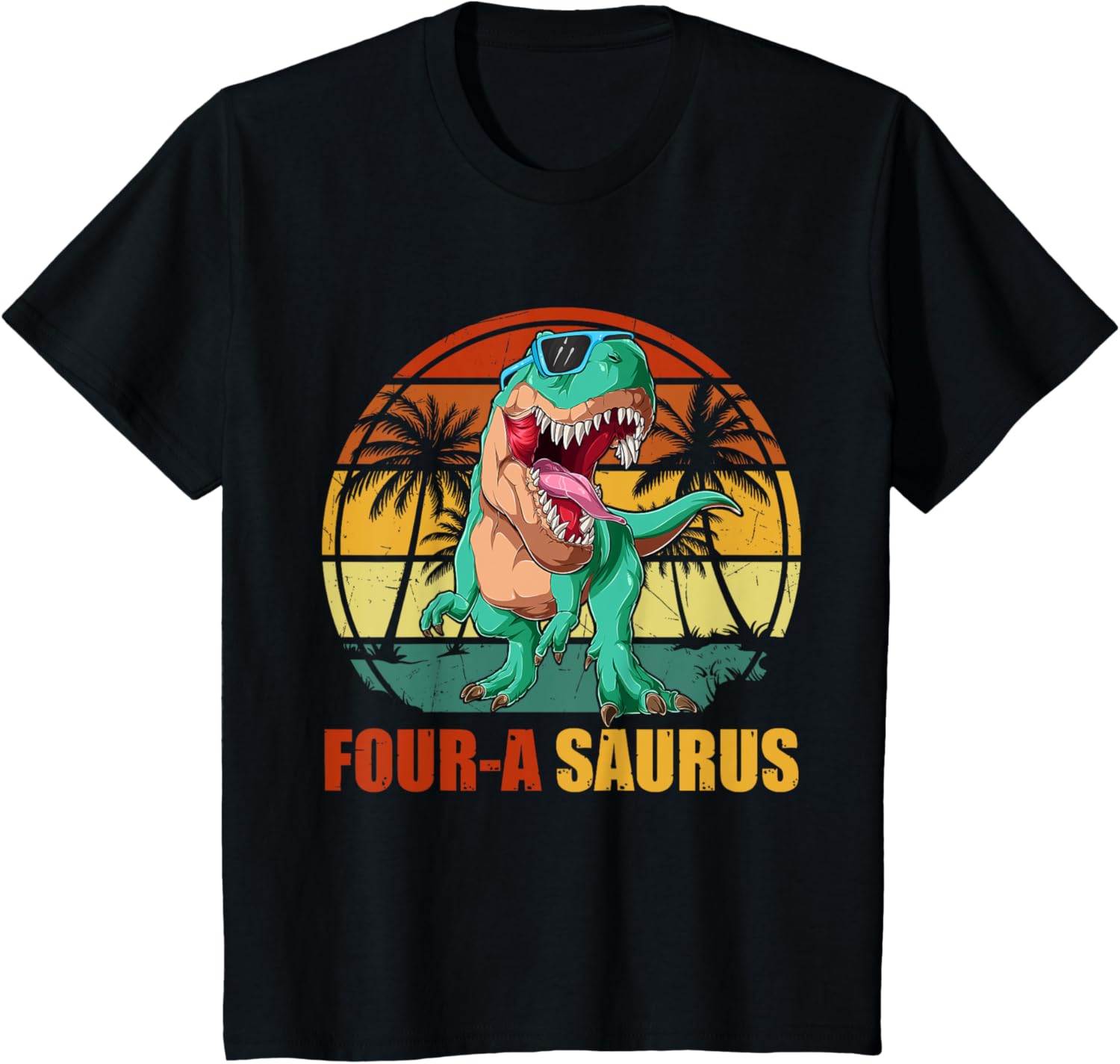 Kids Four Saurus 4th Birthday Boys T-Rex Dinosaur 4 Year Old T-Shirt