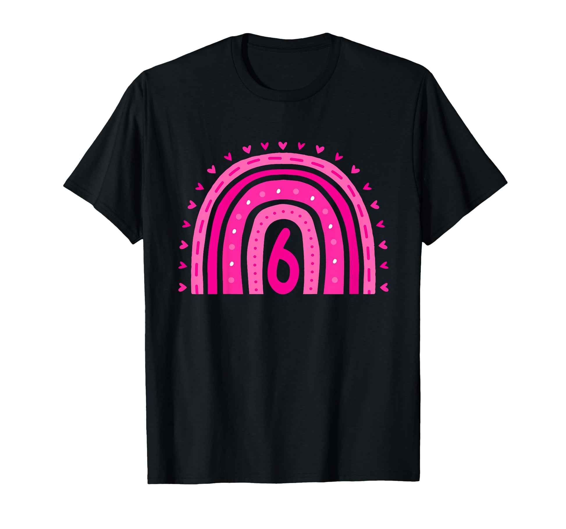 Kids Girl's Birthday Six 6 Years Old 6th Birthday Pink Rainbow T-Shirt