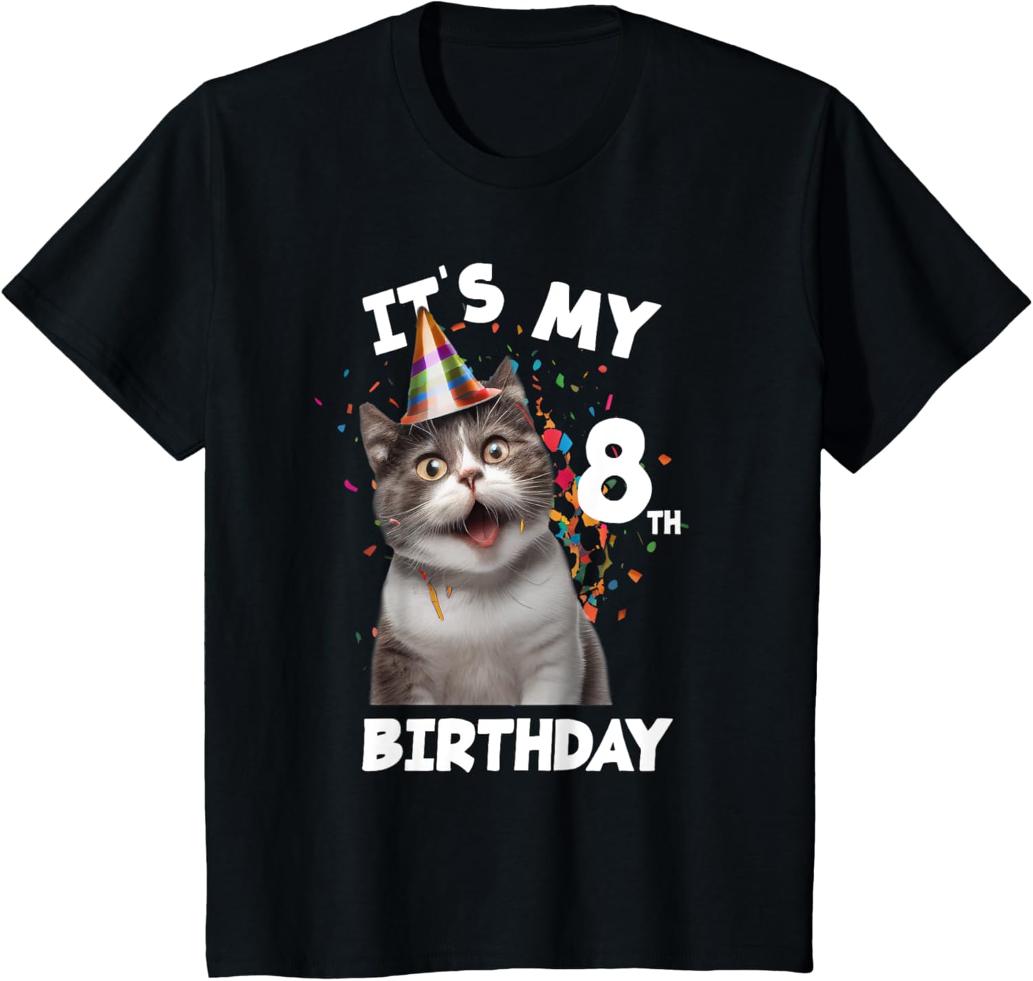 Kids It's my 8th Birthday 8 Year Old Cat Birthday T-Shirt