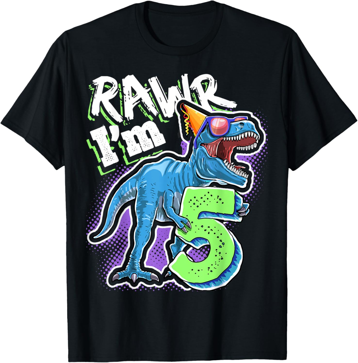 Kids Rawr I'm 5 5th Birthday T Rex Dinosaur Party Gift Boys T-Shirt