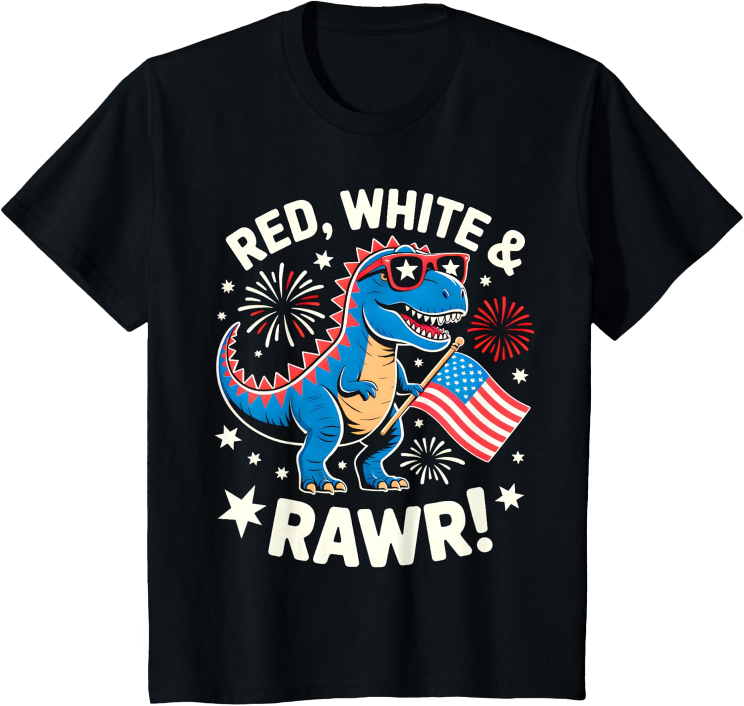 Kids Red White and Rawr Dinosaur T Rex Patriotic 4th Of July Boys T-Shirt