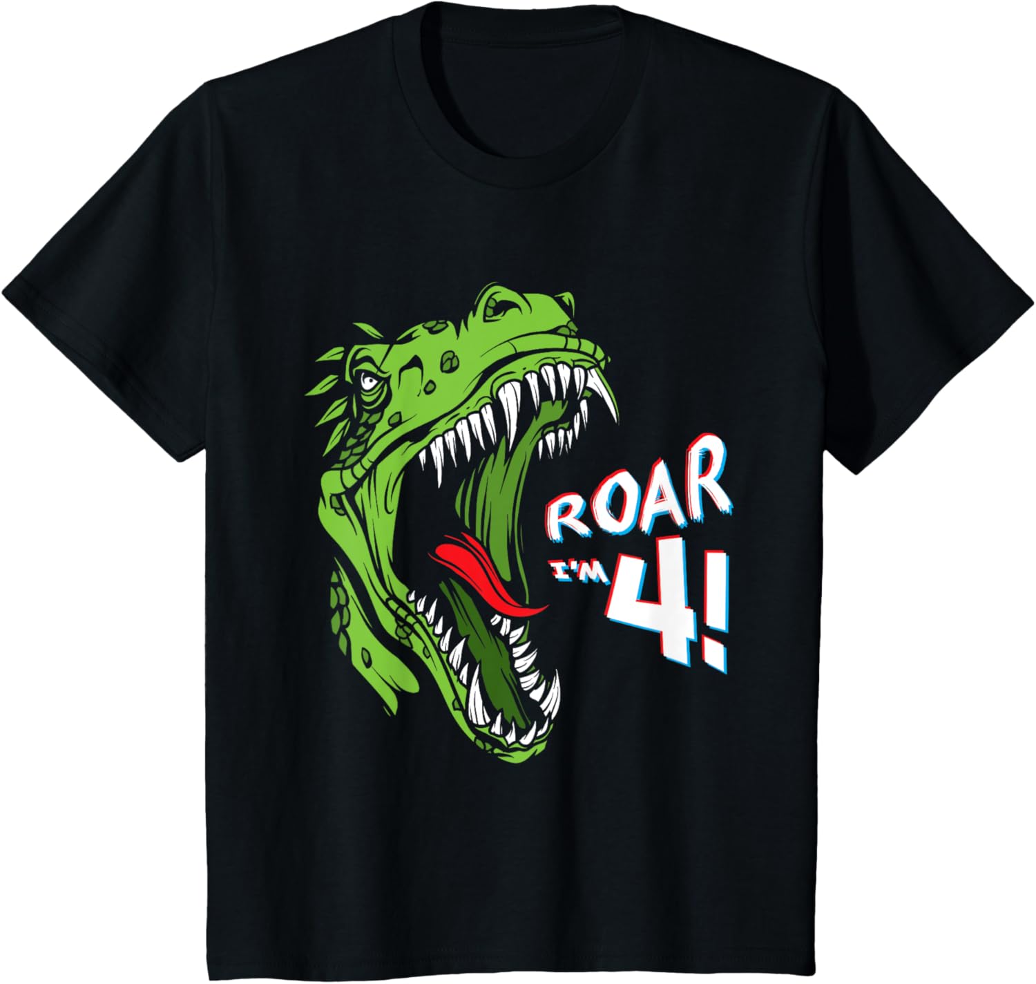 Kids Roar I'm 4! 4th Birthday Tyrannosaurus Rex T-Shirt