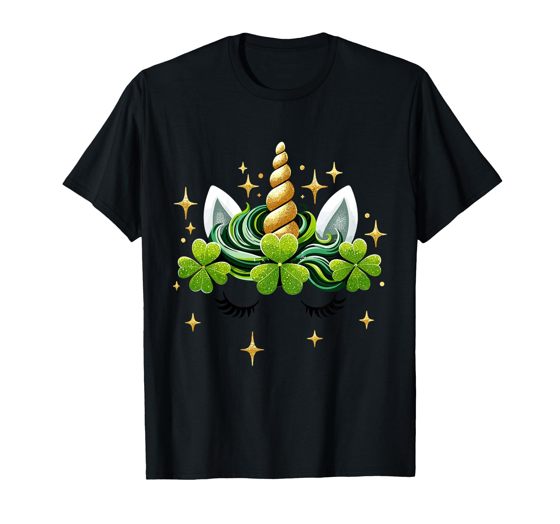 Kids Unicorn Face Shamrock St Patrick's Day Girl T-Shirt