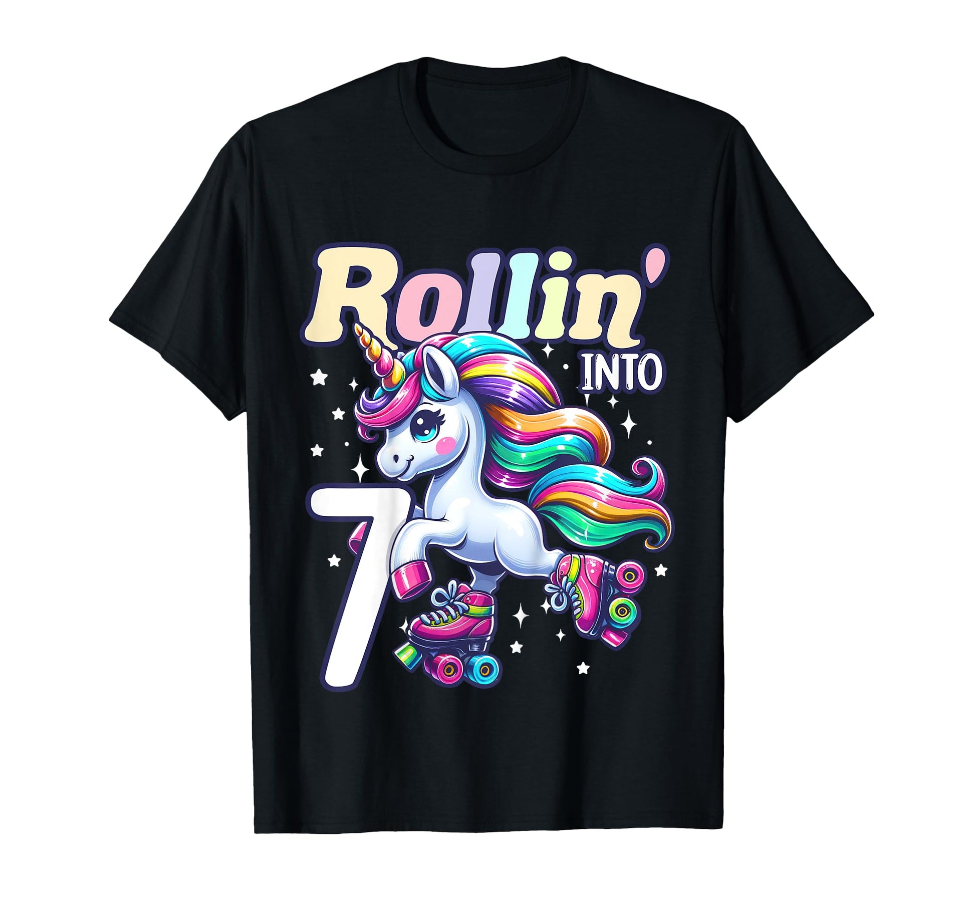 Kids Unicorn Roller Skate 7th Birthday 7 Year Old Party Girls T-Shirt