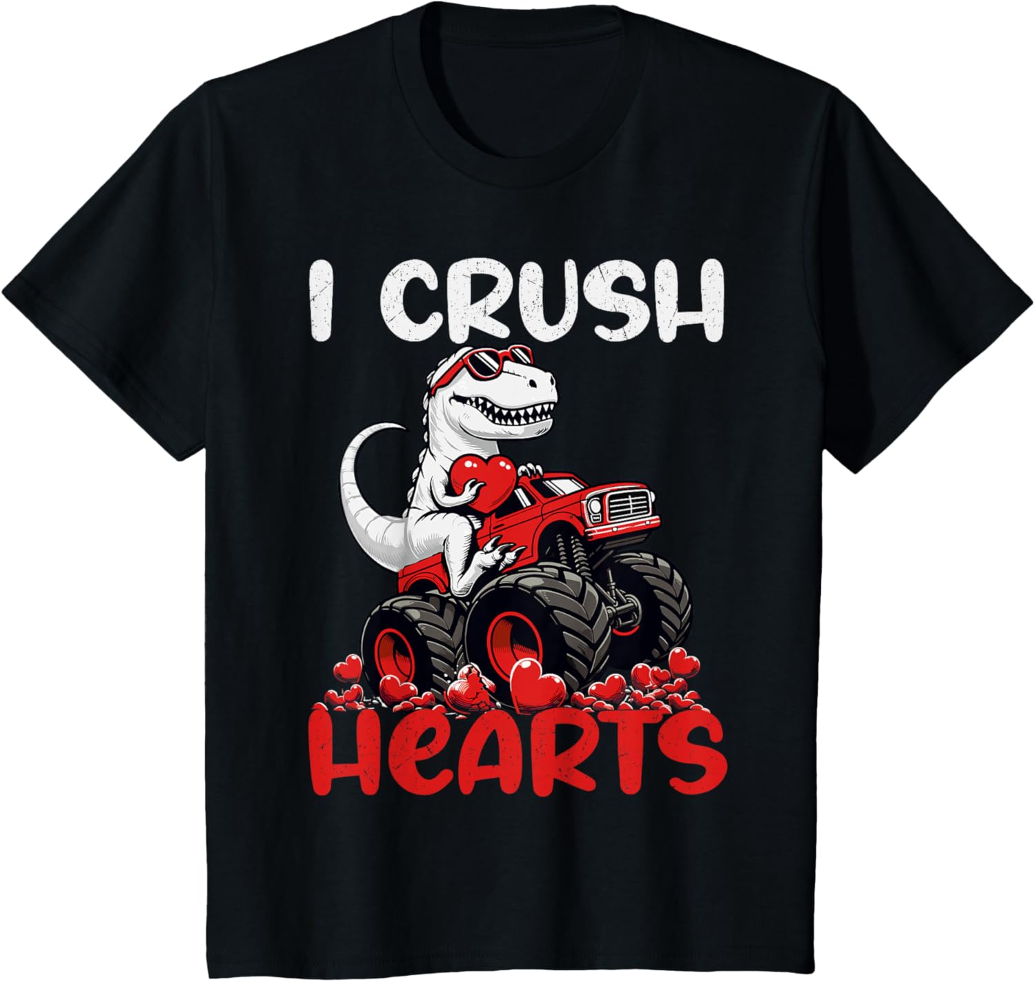 Kids Valentines Day Monster Truck TRex Boy Toddler I Crush Hearts T-Shirt