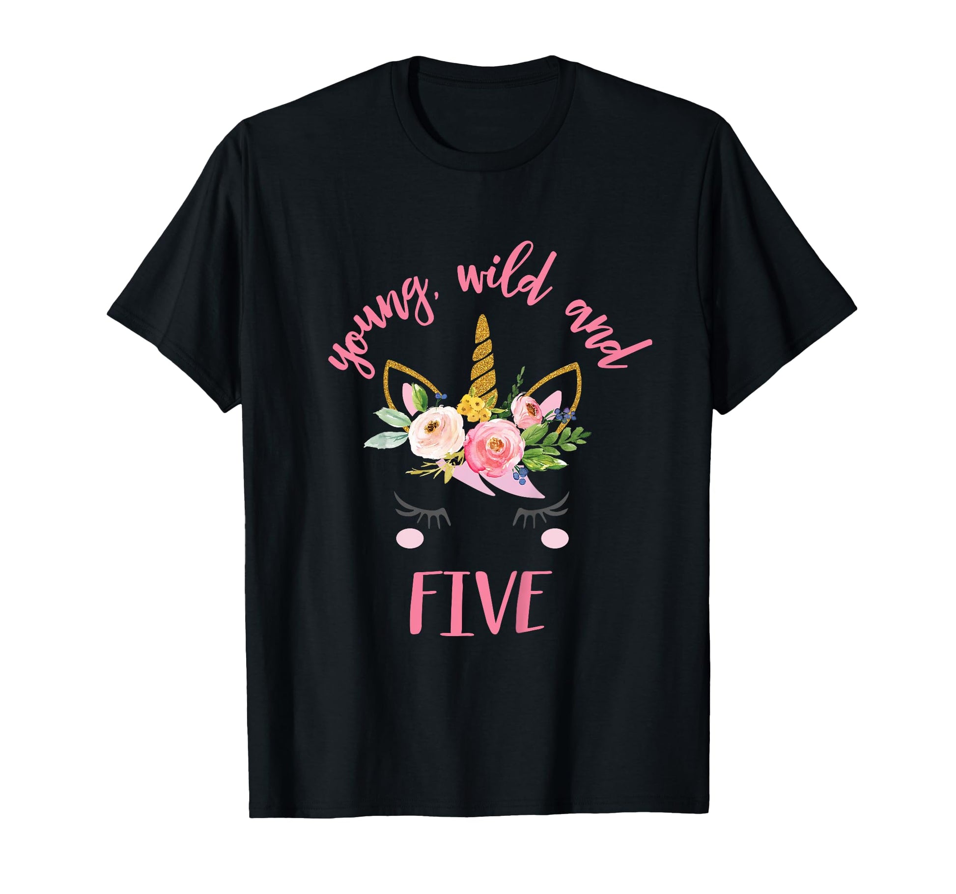 Kids Young Wild and Five, Unicorn 5th Birthday Shirt T-Shirt
