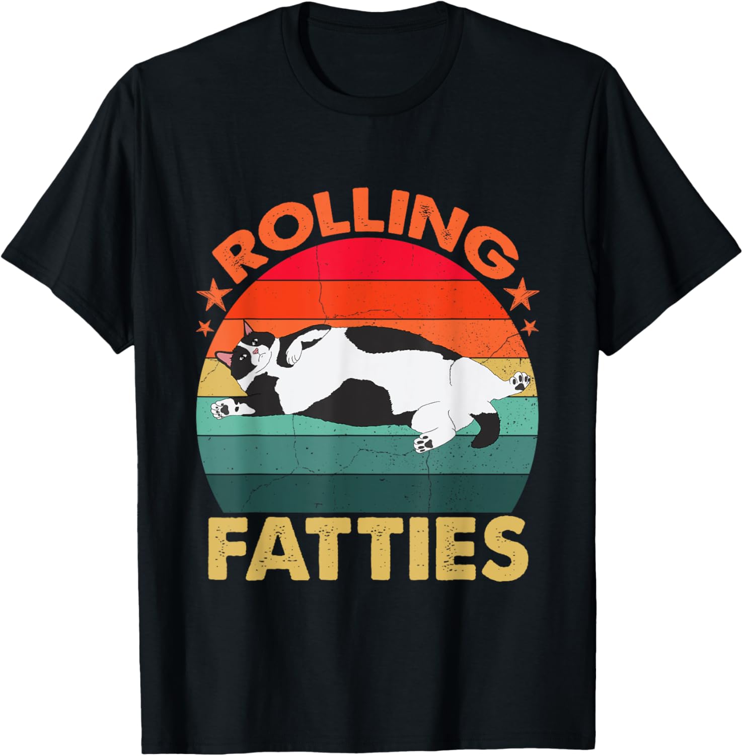 Retro Fat Kitten Tee Funny Cat Rolling Fatties T-Shirt