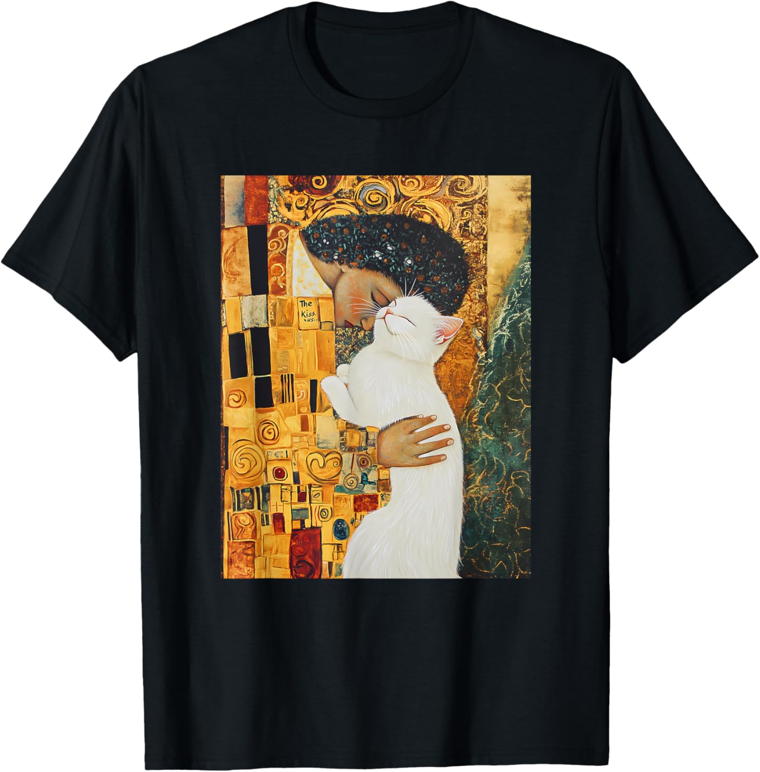Klimt’s "The Kiss" Cat Lover Parody Graphic Tee Klimt Style T-Shirt