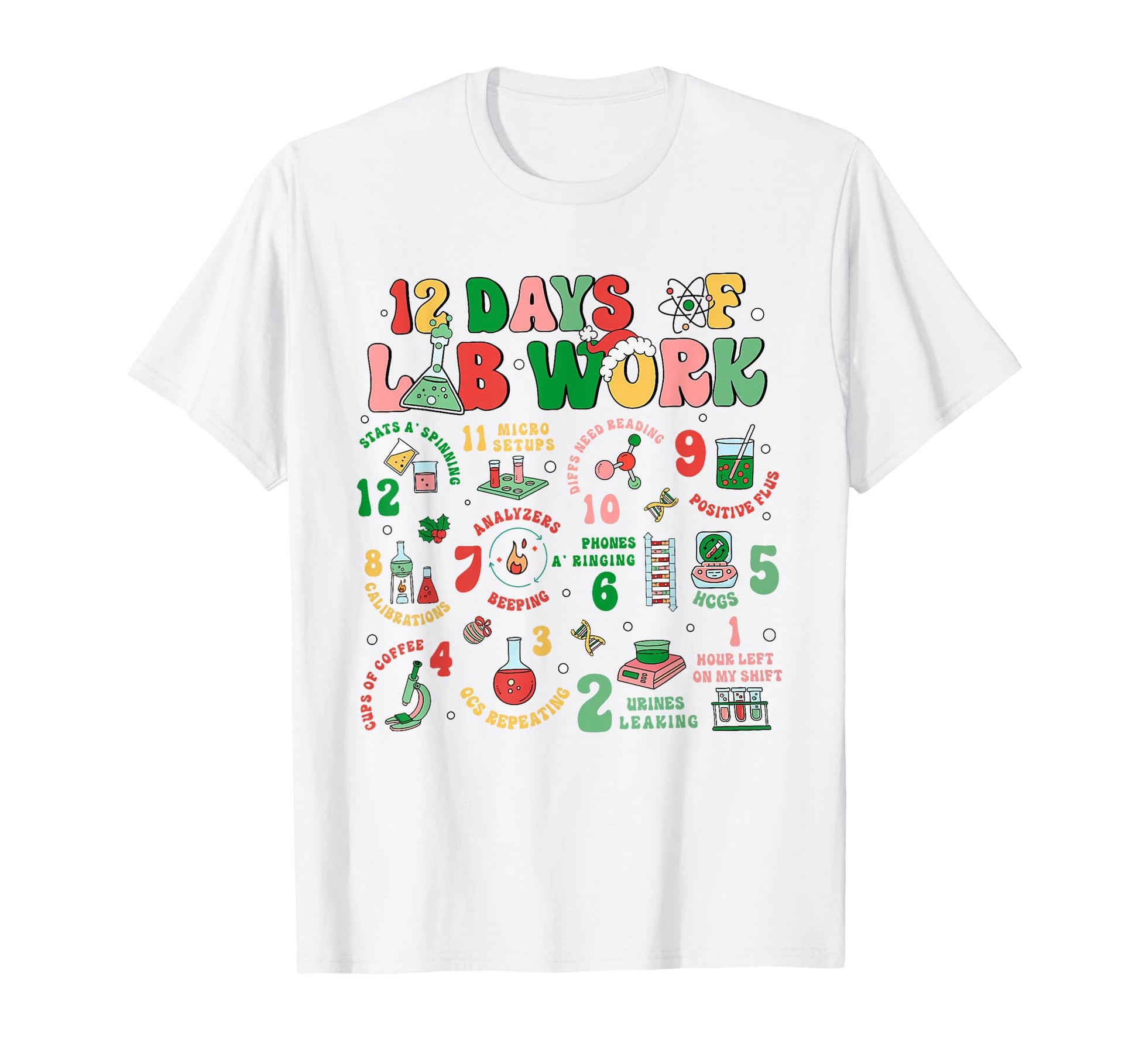 Lab Technician Christmas Gifts Unisex-Adults T-Shirt, Lab Tech Christmas, Medical Lab Science, White, Small, Short Sleeve