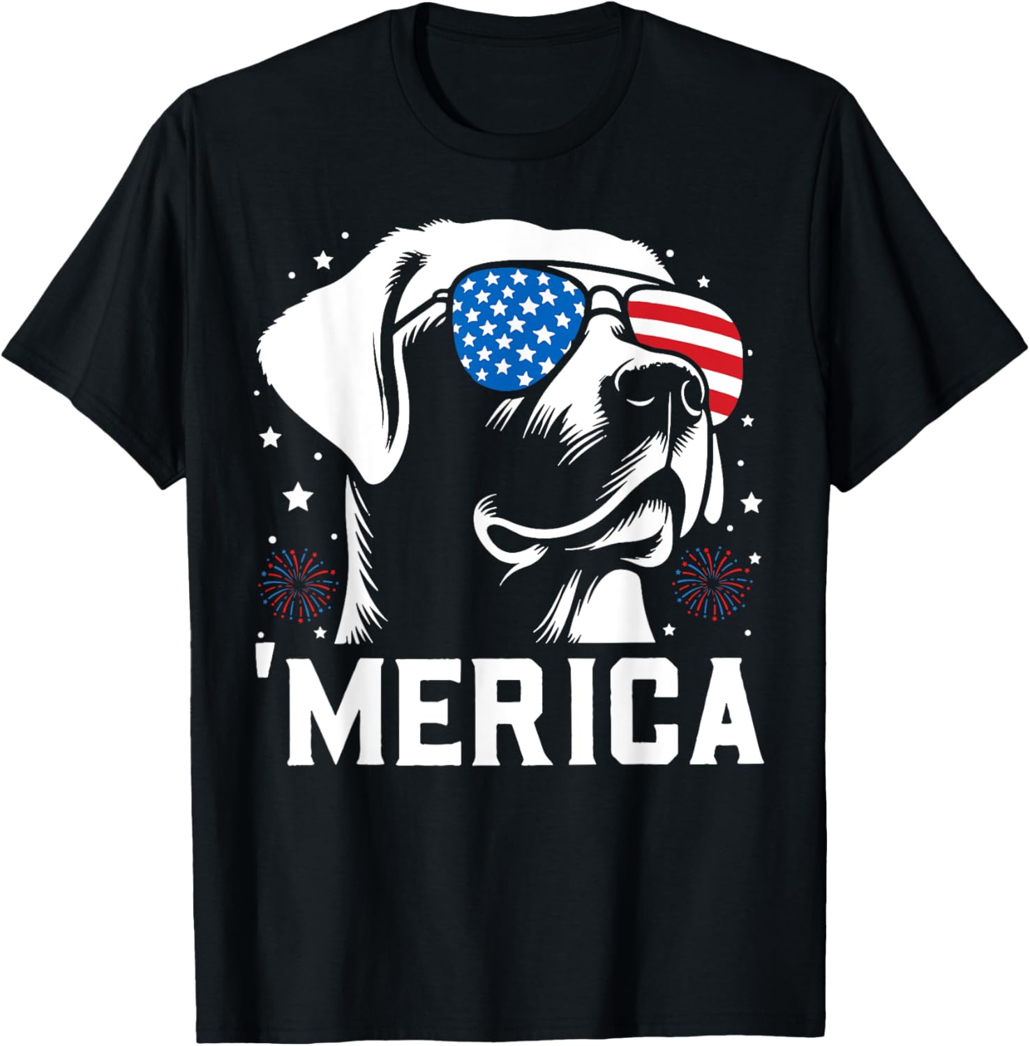Vintage Labrador Dog Merica Patriotic USA Flag 4th Of July T-Shirt