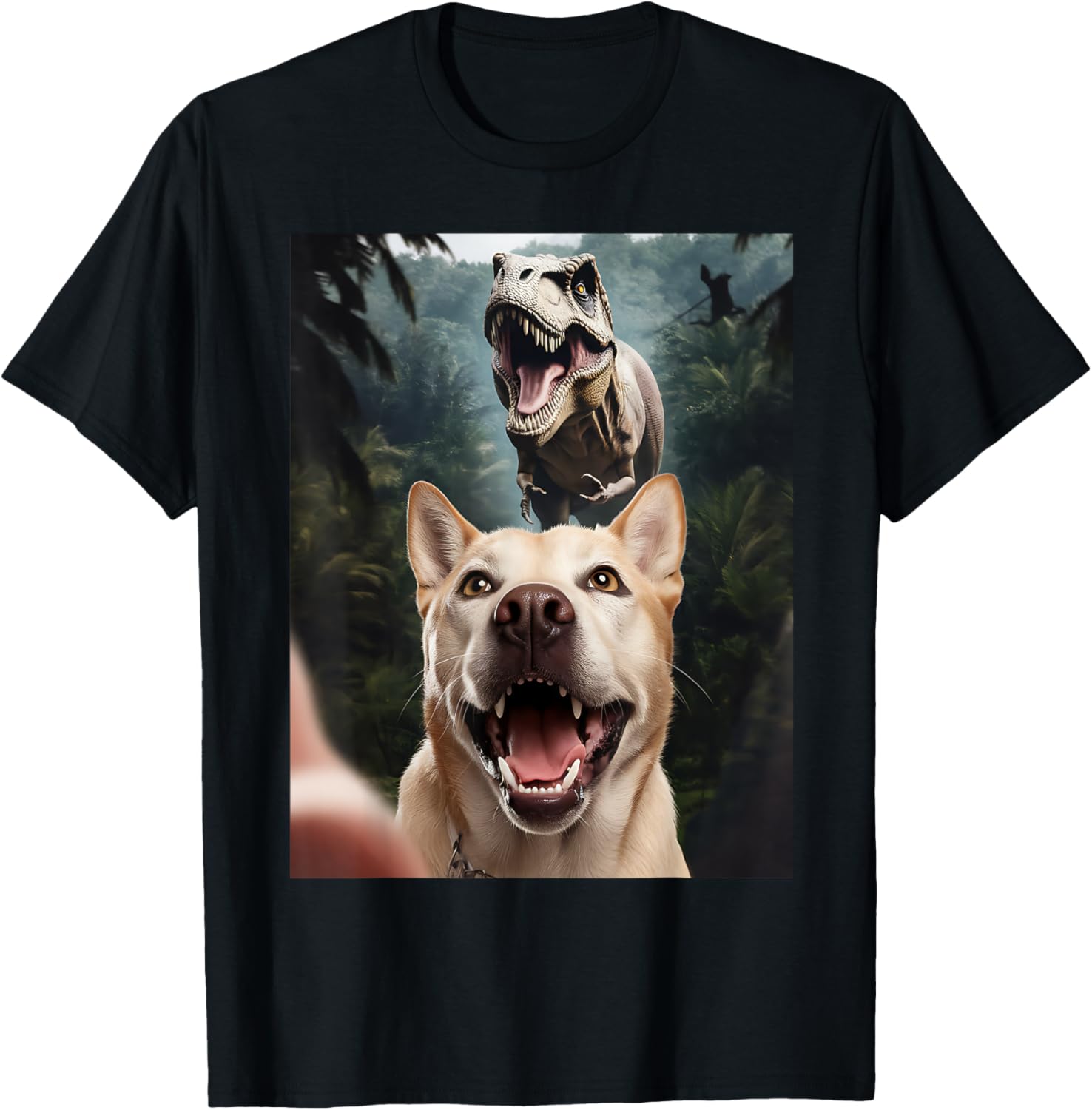 Labrador Selfie T-Rex Dinosaur Funny Dog Tee Men Women Kids T-Shirt
