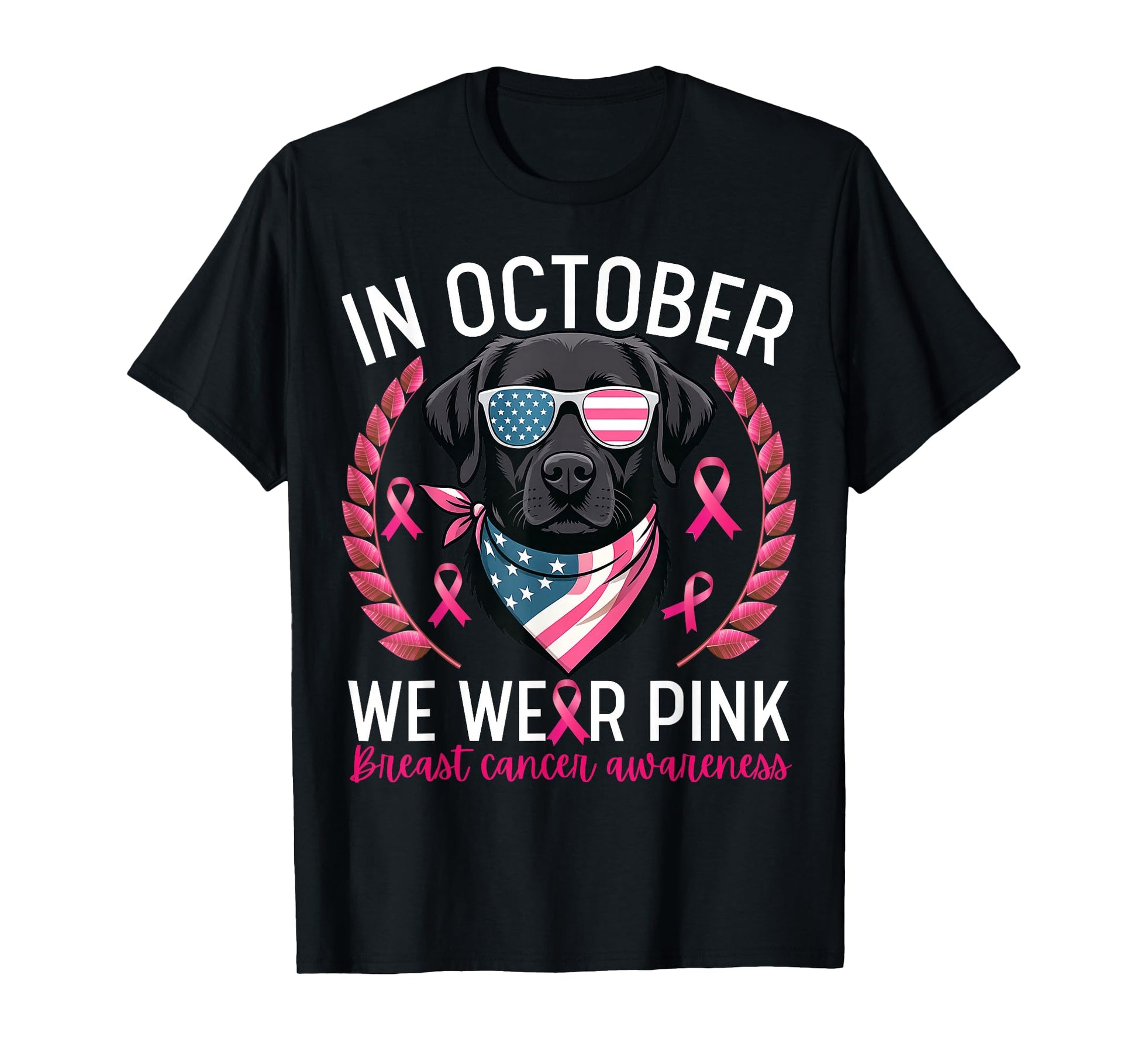 Labrador USA Flag Patriotic Dog Breast Cancer Awareness T-Shirt