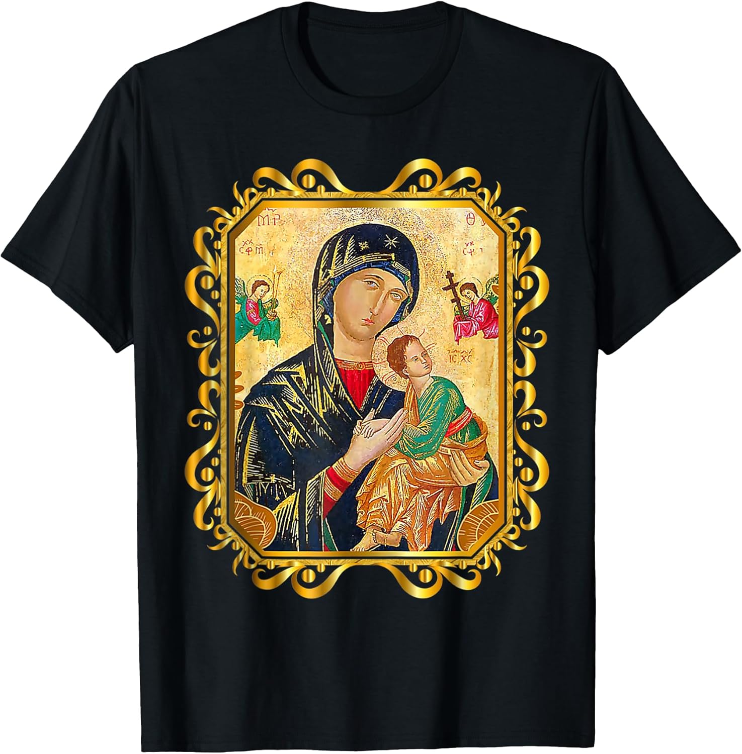 Our Lady of Perpetual Help Blessed Mother Mary Catholic Icon T-Shirt