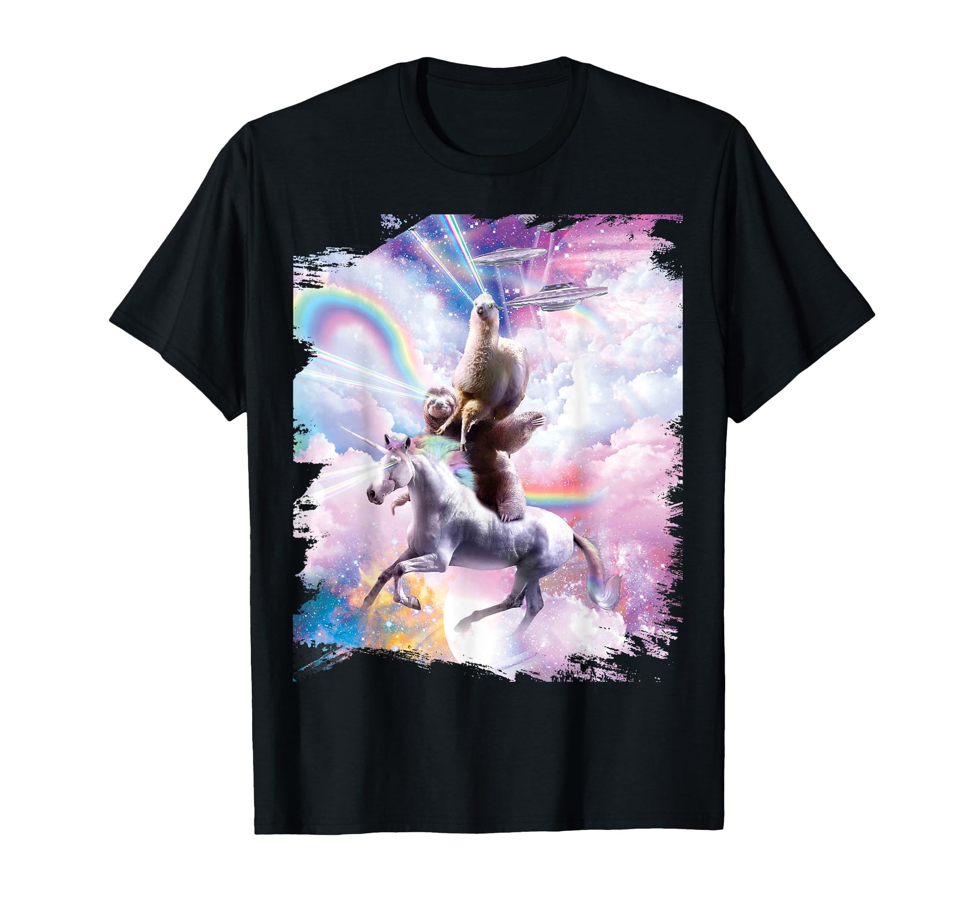Laser Eyes Space Llama on Sloth Unicorn - Rainbow T-Shirt