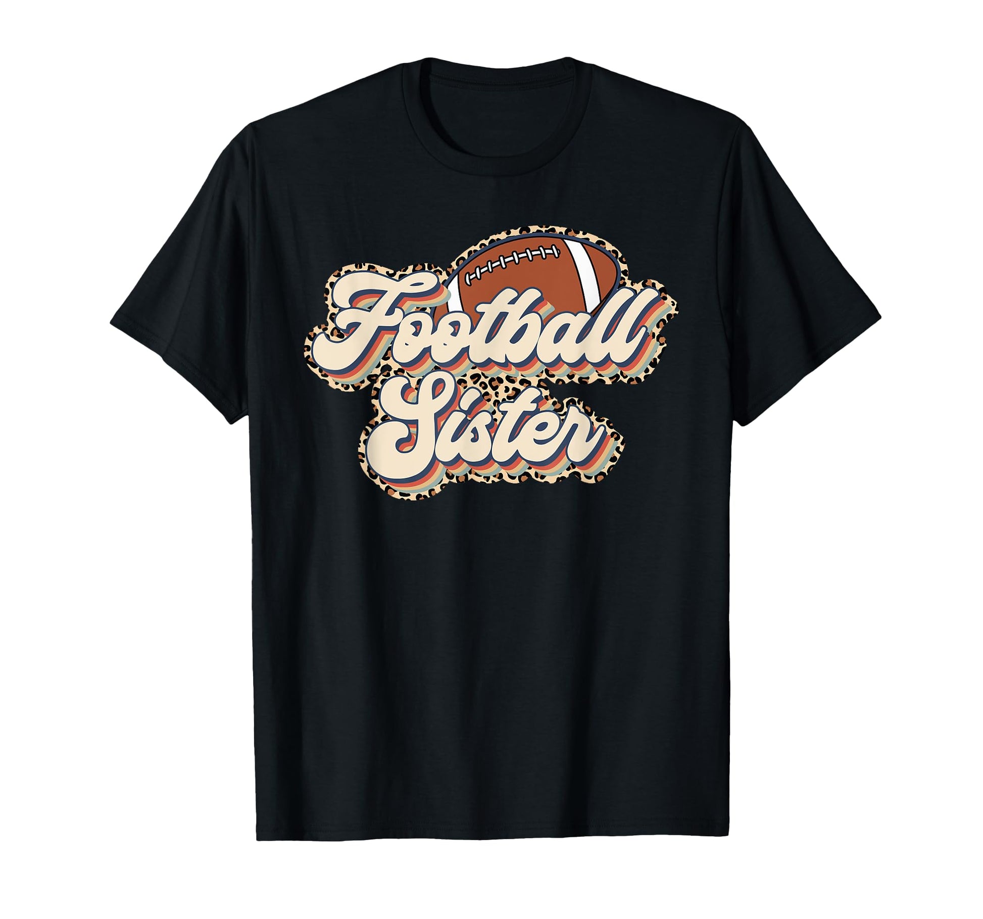 Leopard Retro Football Sister Football Season Football Sis T-Shirt