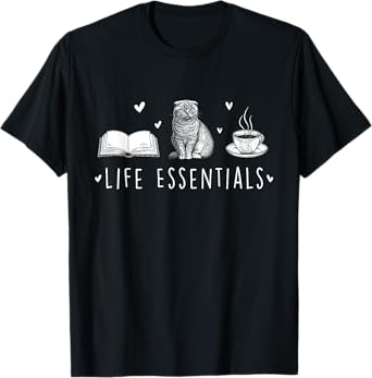 Life Essentials - Cats Books Coffee Animal Lover Pet Owner T-Shirt