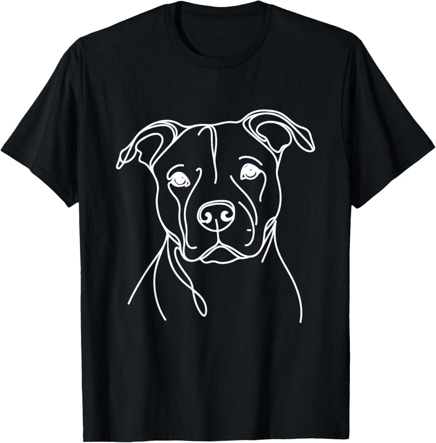 Line Art Dad Mom Dog - Pitbull T-Shirt